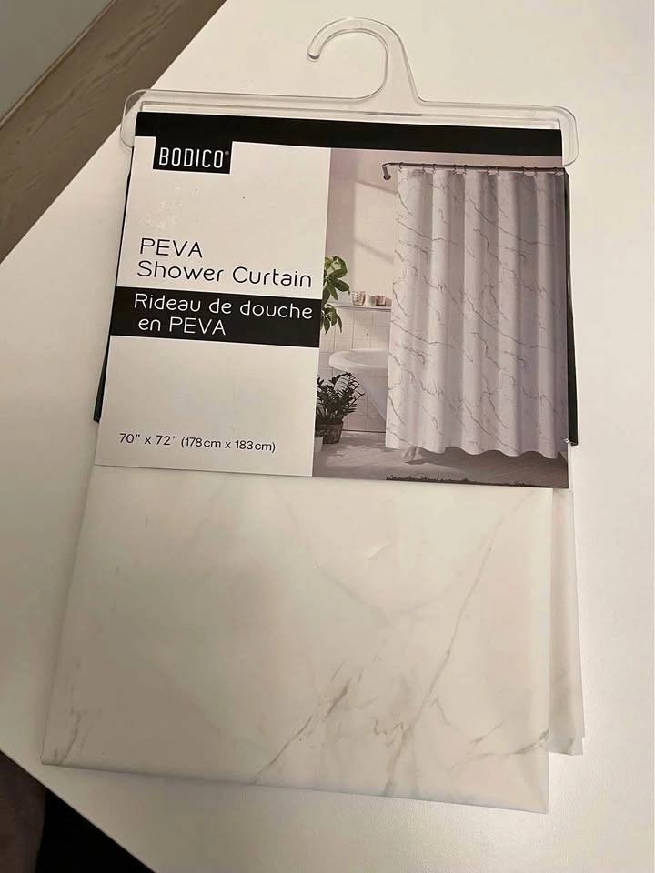 For sale is a brand new shower curtain, 70 in. x 72 in. in size. Pick up address is in Edmonds, Burnaby.