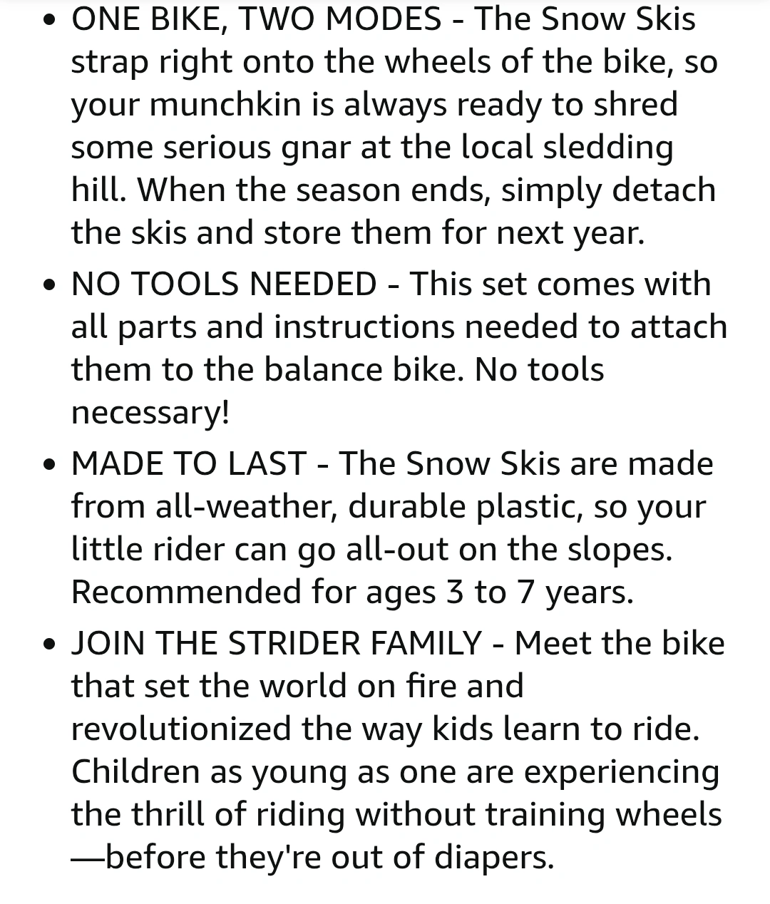202Brand New Strider 14x Sport Snow Skis Set Transform Balance Bike into Sled Fits Our 14x Balance Bike - for Kids 3 to 7 Years Tool-Free Assembly Retail $70 plus tax Asking $45 Come from pet and smoke free home Details are in the pictures Castle Downs Area Please check out my other ads. Thanks