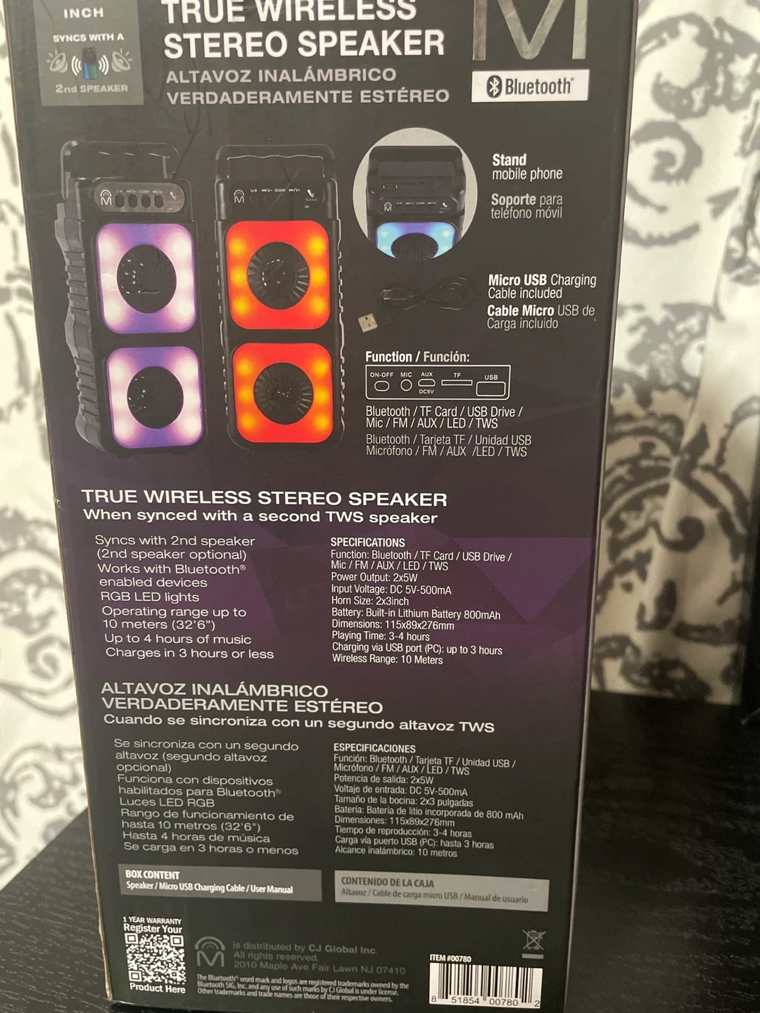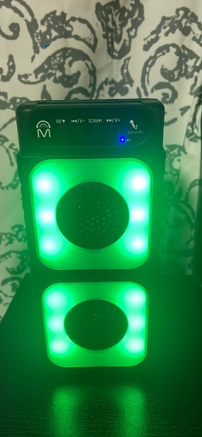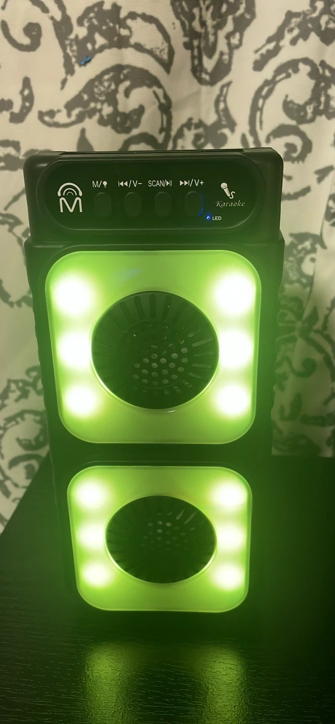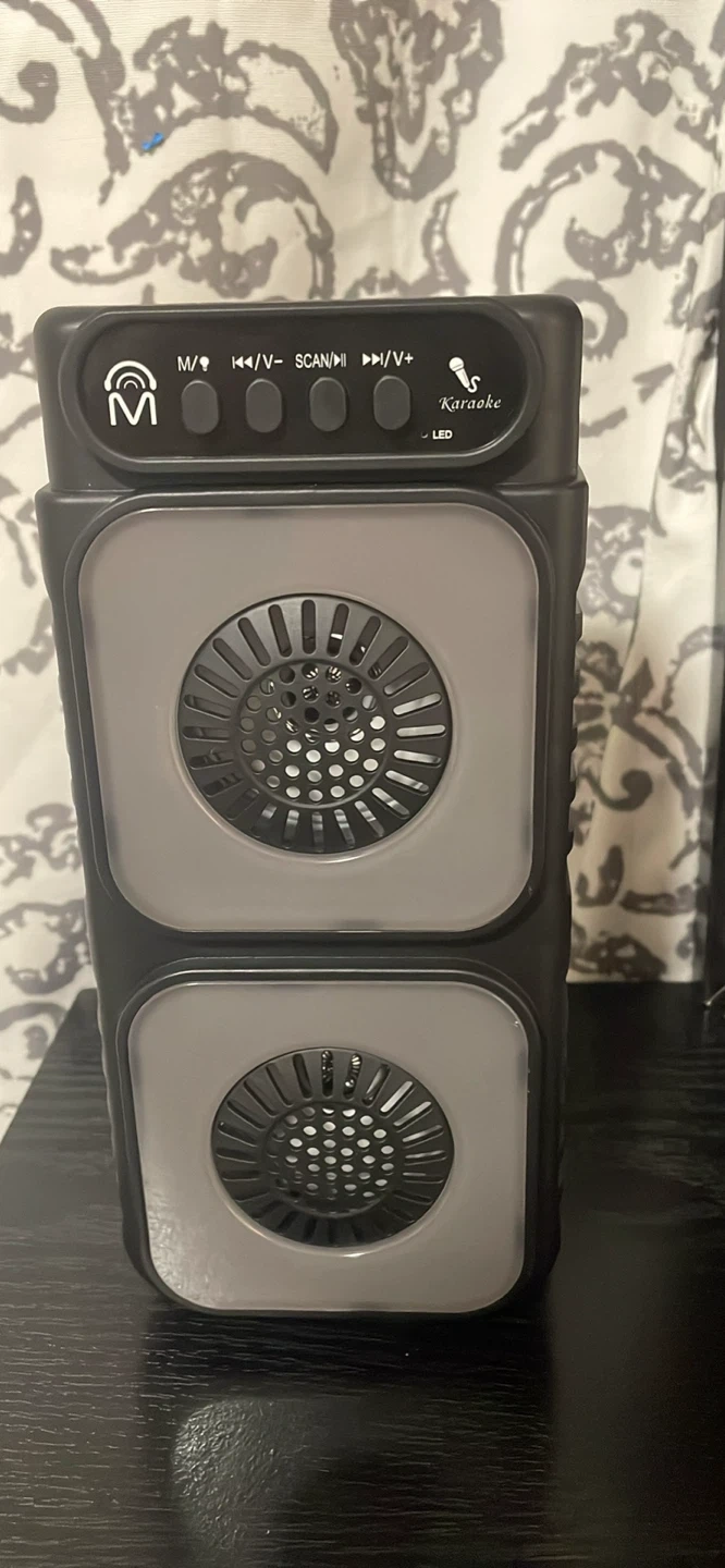 25Selling a Tower TWS True Wireless Stereo Speaker! It features double 3-inch speakers and Bluetooth connectivity. The speaker also has flame LED lights for a cool visual effect. Key features include: - SD card slot - USB port - Mic port - FM radio It also comes with a micro USB charging cable and user manual. Dimensions are 115x92x276mm