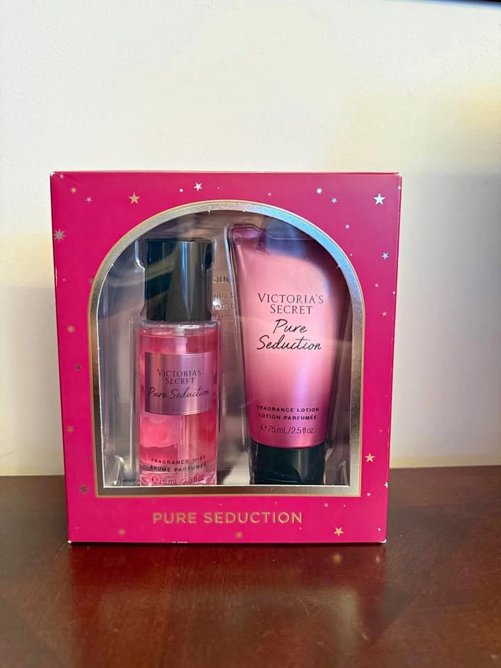 65Fragrance is Pure Seduction by Victorias Secret. Includes fragrance mist & fragrance lotion. New $26 plus tax.. yours for $15 Please note the bottom of the box is slightly damaged but it’s brand new Selling because got it as a present but won’t use.