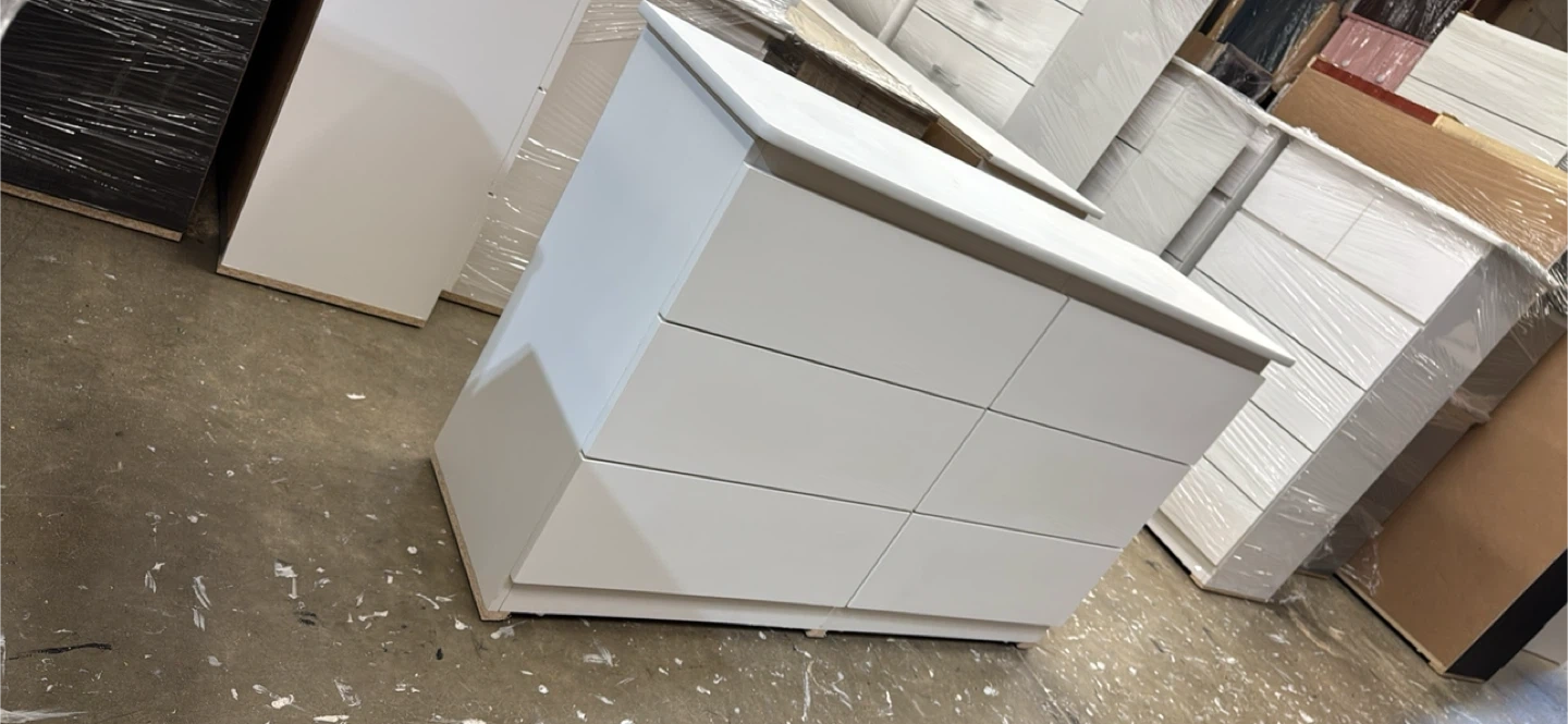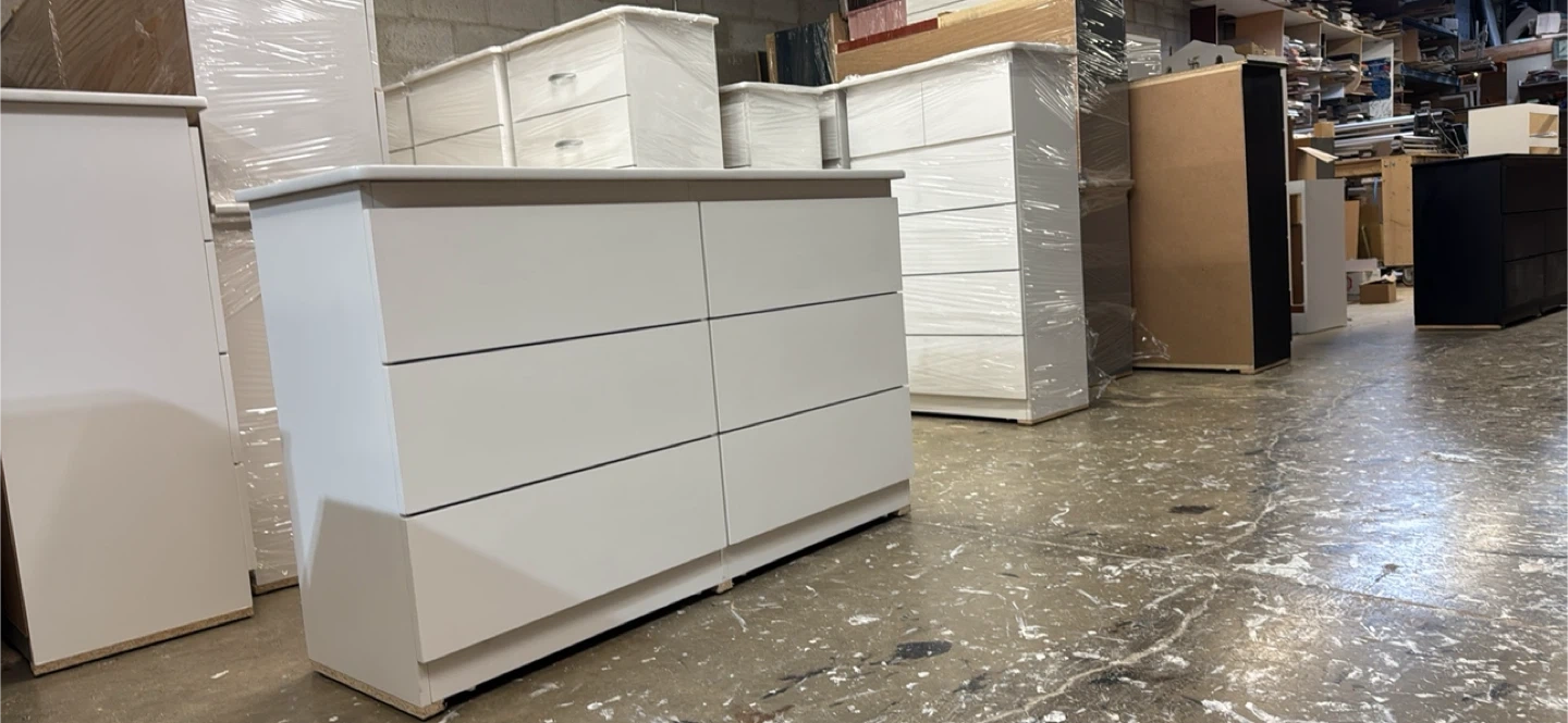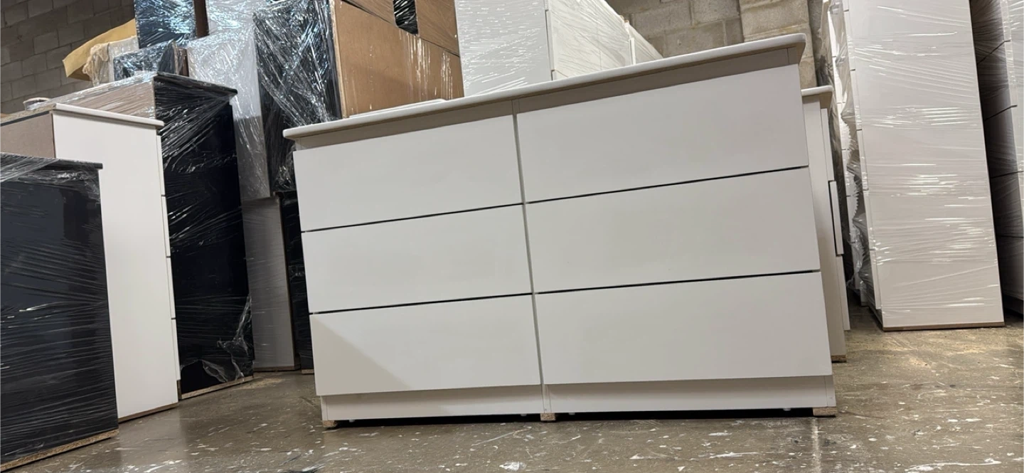 Here's a sleek white dresser with six drawers! It's a great storage solution for any bedroom or living space. The simple design and neutral colour make it easy to match with any decor. Feel free to reach out if you have any questions!