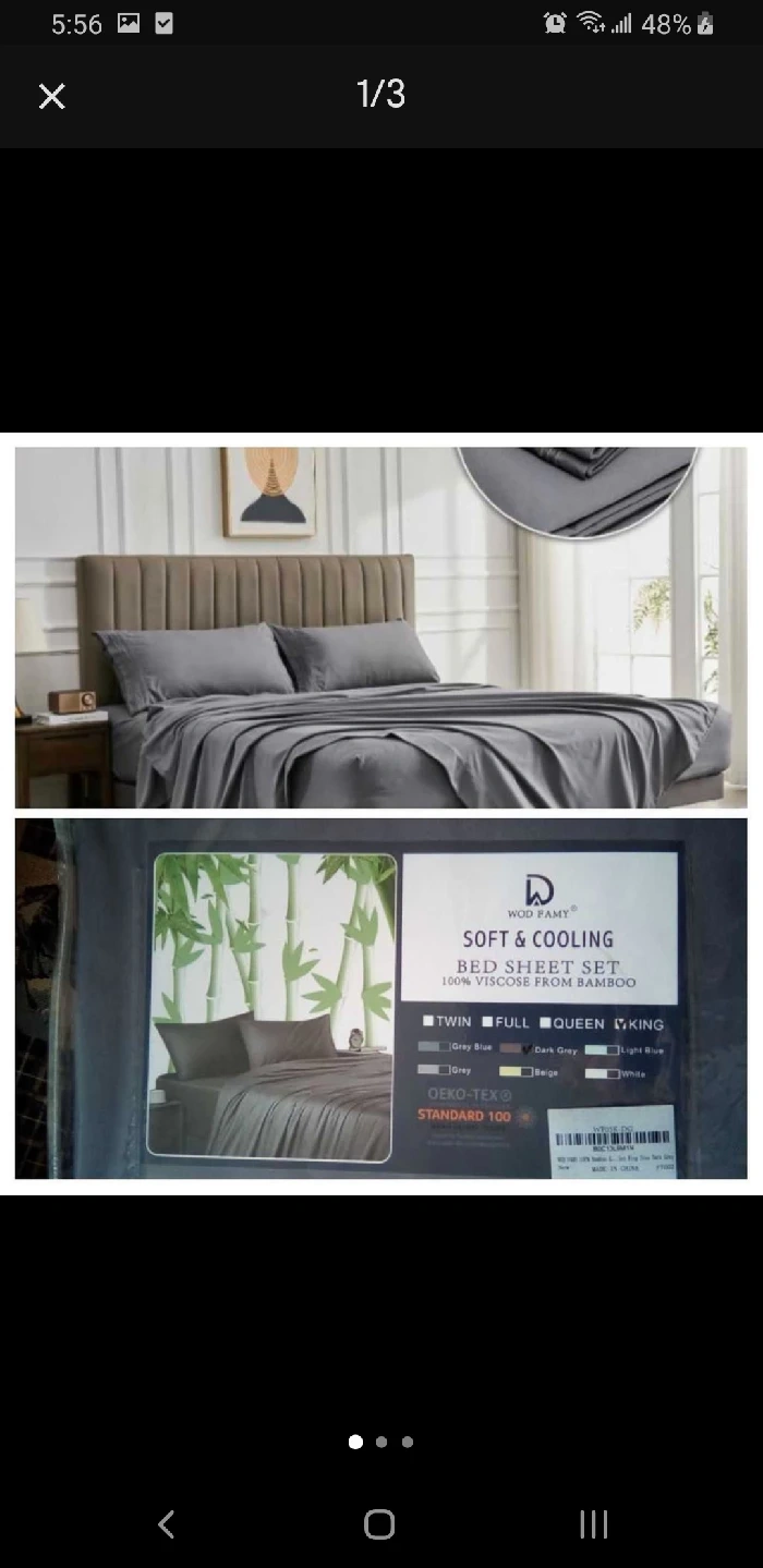 BRAND-NEW Wod Famy bamboo king-size bed sheet set, crafted from 100% viscose from bamboo in a stylish dark grey. These soft and cooling sheets are perfect for a restful night's sleep. ♡ Makes a perfect gift Specifications: * Size: King * Material: 100% Viscose from Bamboo * Colour: Dark Grey * Soft and Cooling Fabric Looking for a sleep upgrade? These sheets are calling your name! And yes, the sheets are available if you're seeing this ad, so no need to ask! ♡ please checkout my other ads🙏