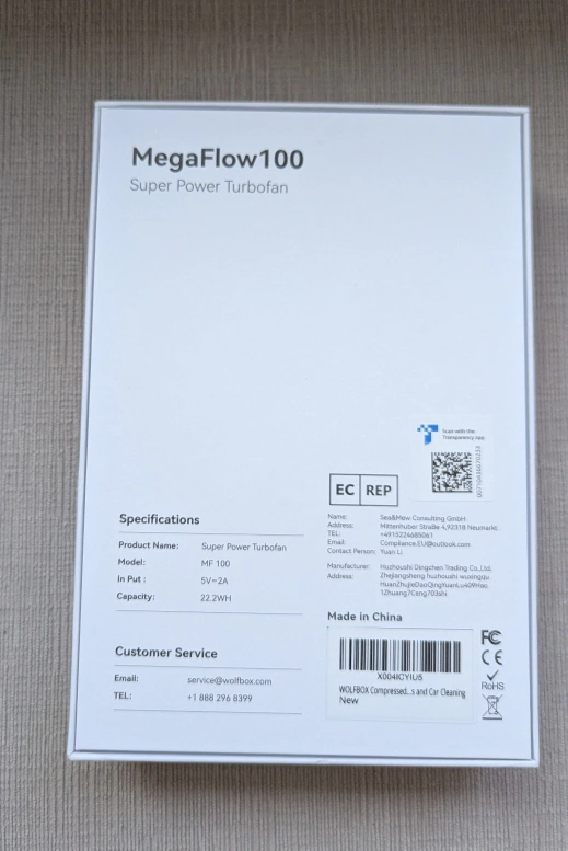 Selling a brand new Wolfbox MegaFlow100 Super Power Turbofan! It's a super power turbofan that is compressed and great for car cleaning. The box and user manual are included!
