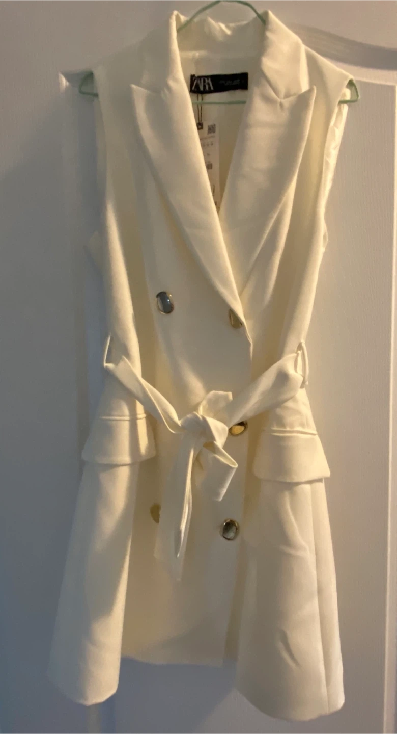 Brand Mew, never been worn, Women size M, vest dress with double gold buttons. It’s stored in closet with plastic cover. Dog friendly home.