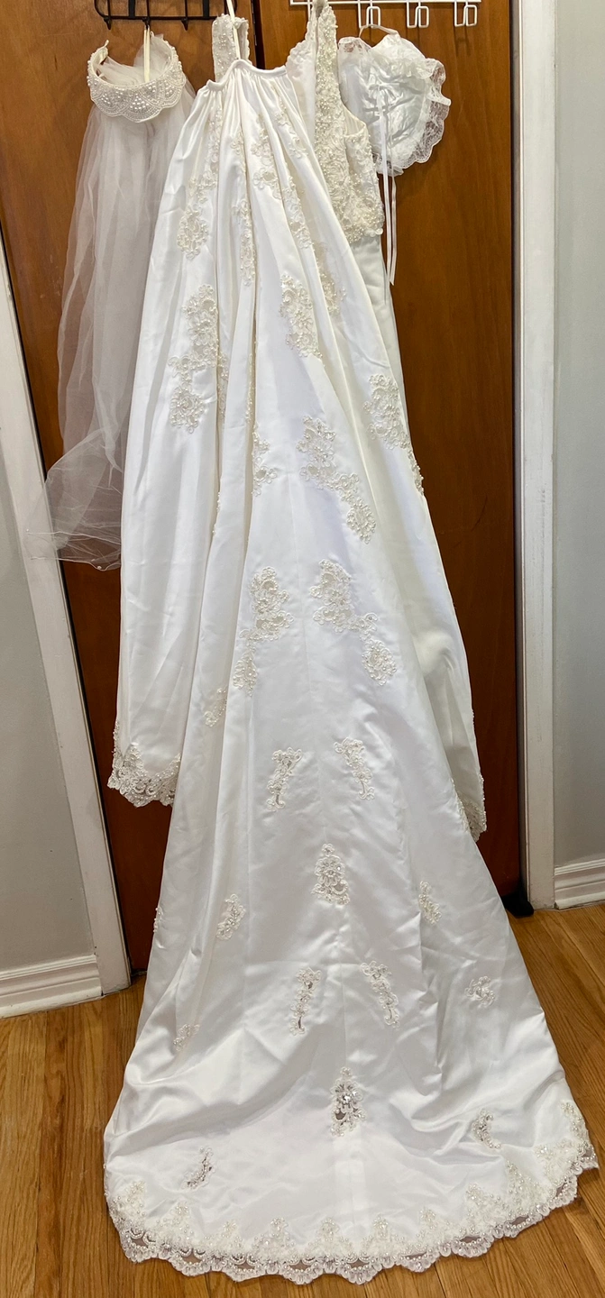 28MoriLee Traditional Wedding Dress Very Pretty Beads Sequins Lace Entire set including, Gown, Train, Tiara, Gloves. Size-10 / S / XS (only one time used) (you could have the dress Dry-cleaned and wear it without any creases) Can be delivered to some of the GO station.