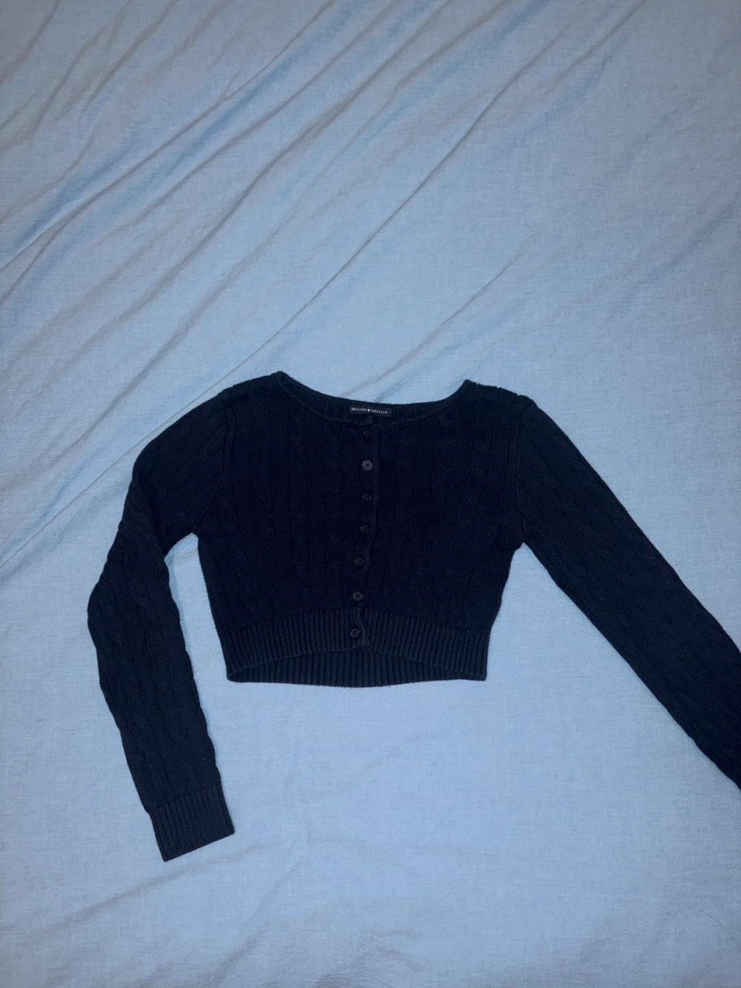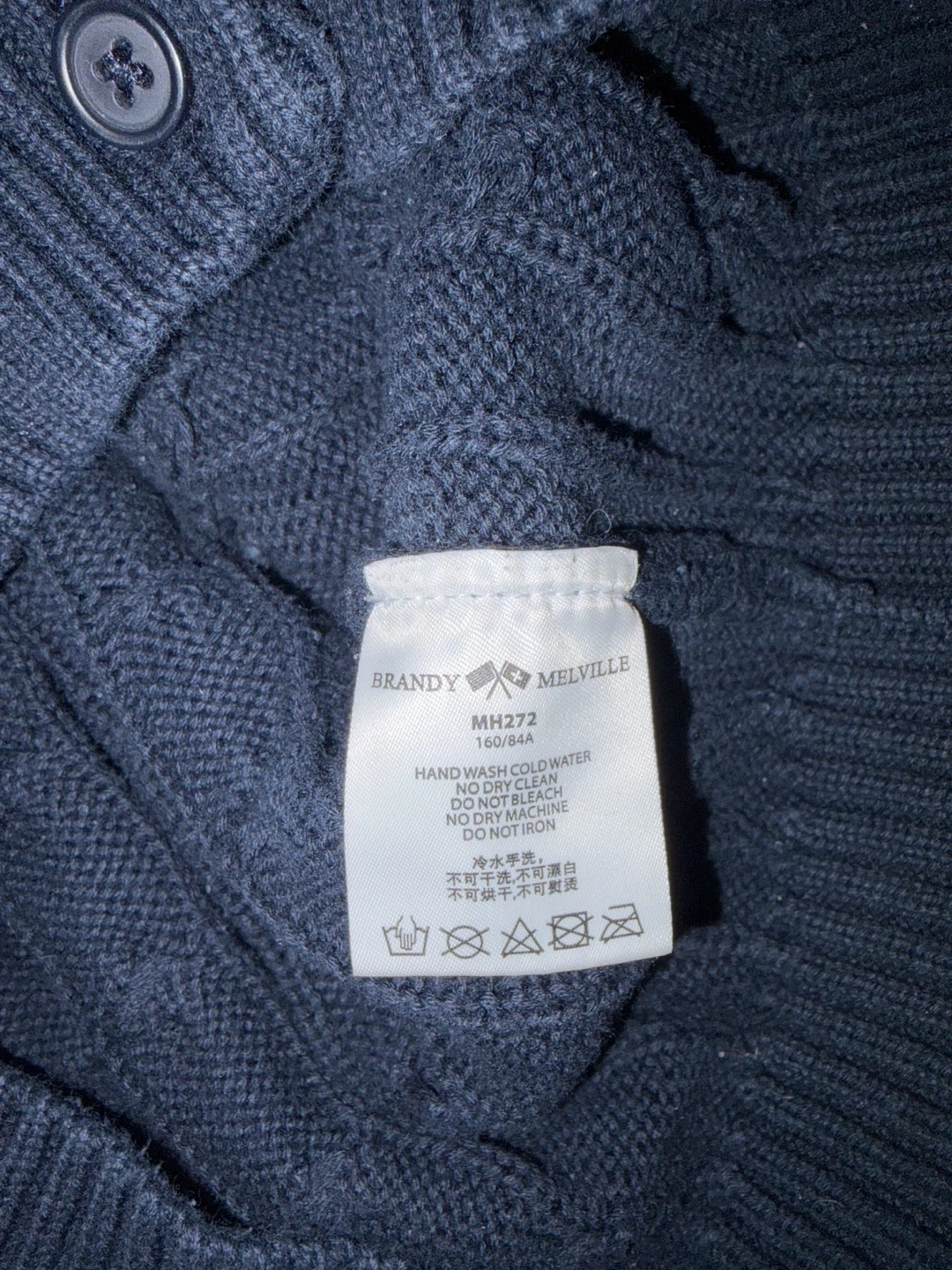 92This is a Brandy Melville 100% cotton cardigan in navy blue. It's a one size fits all and features a classic cropped cable knit design. Perfect for layering or wearing on its own!