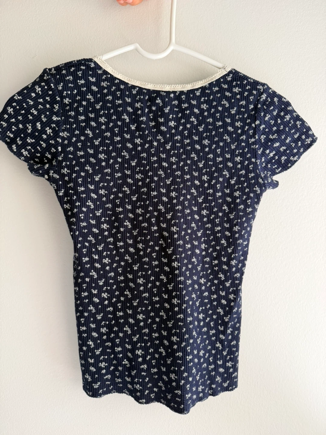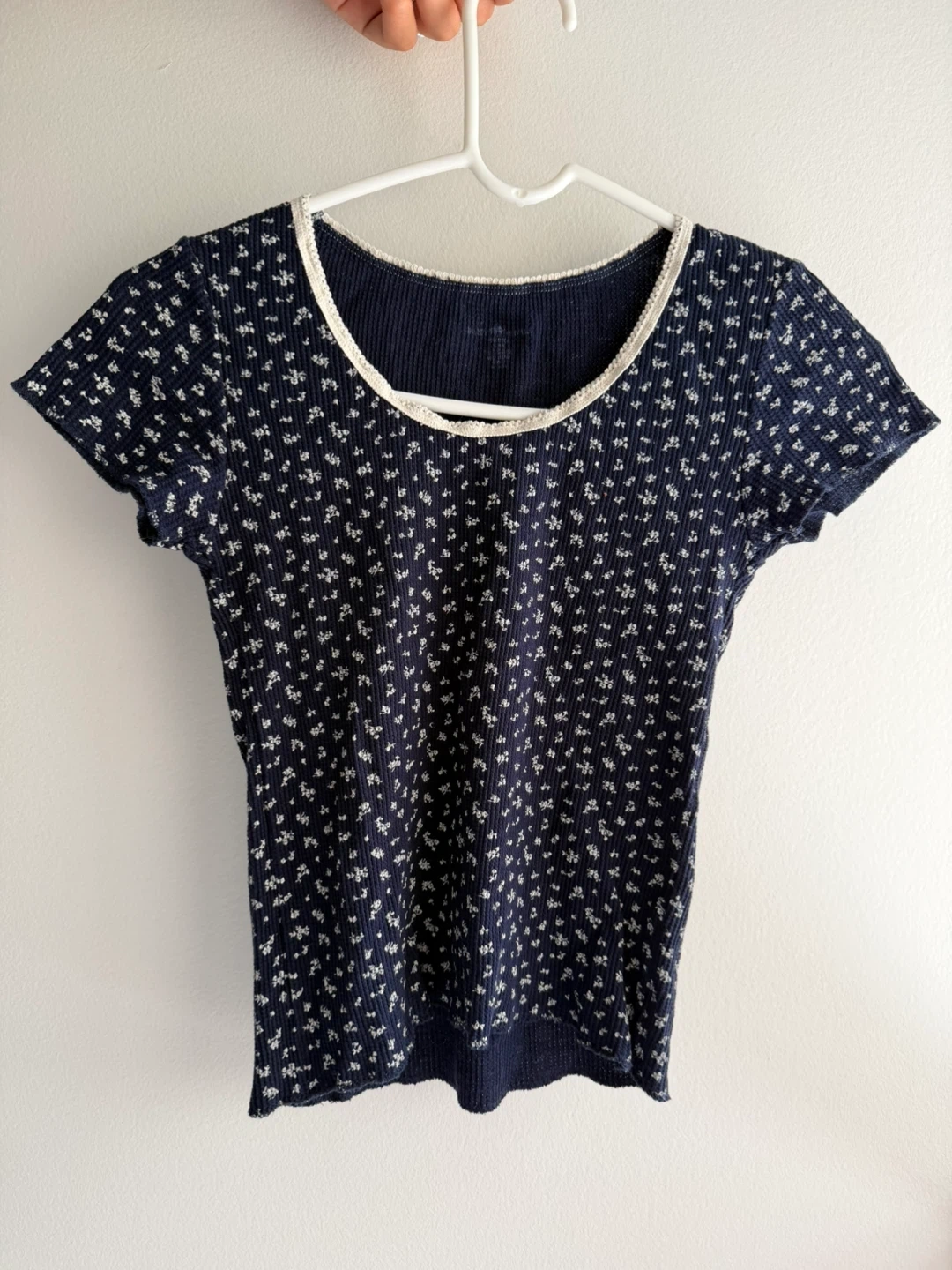 Cute Brandy Melville ribbed top with a navy blue and white floral pattern Perfect for layering or wearing on its own