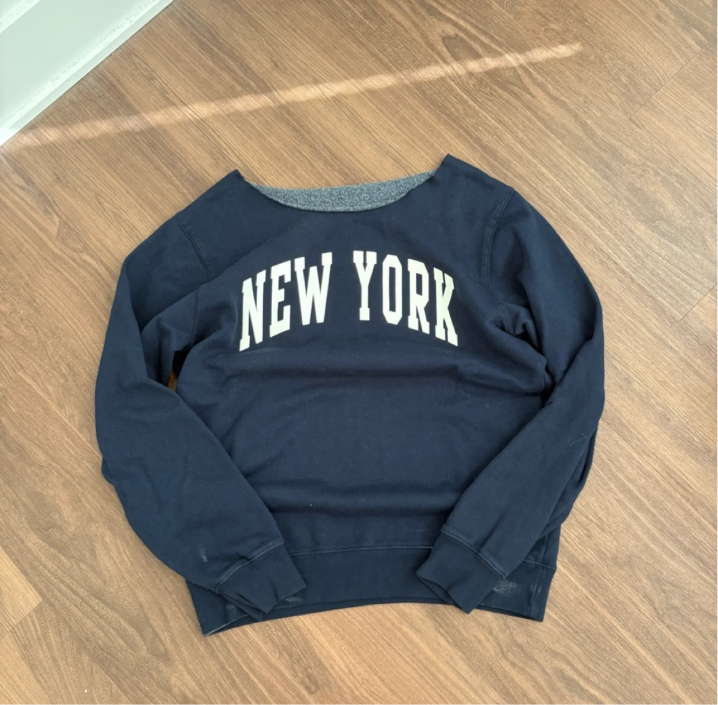 Cozy navy blue crewneck sweatshirt with 'NEW YORK' printed in white across the chest. It's in great shape and perfect for staying warm on chilly days! brandy is one size fits all