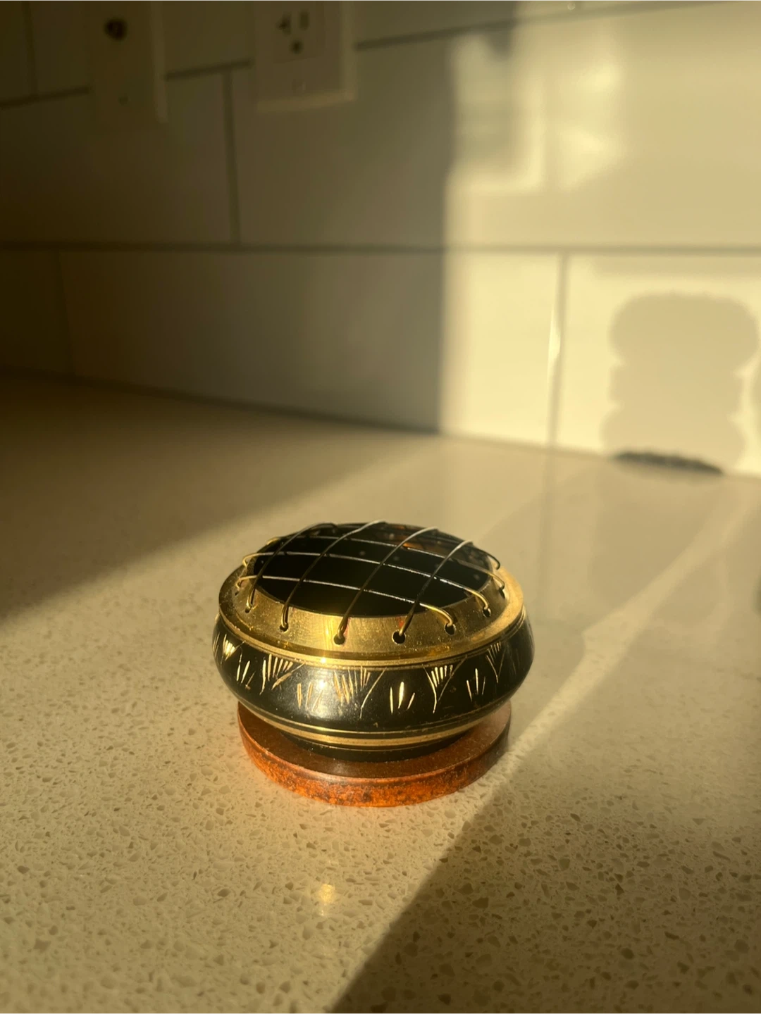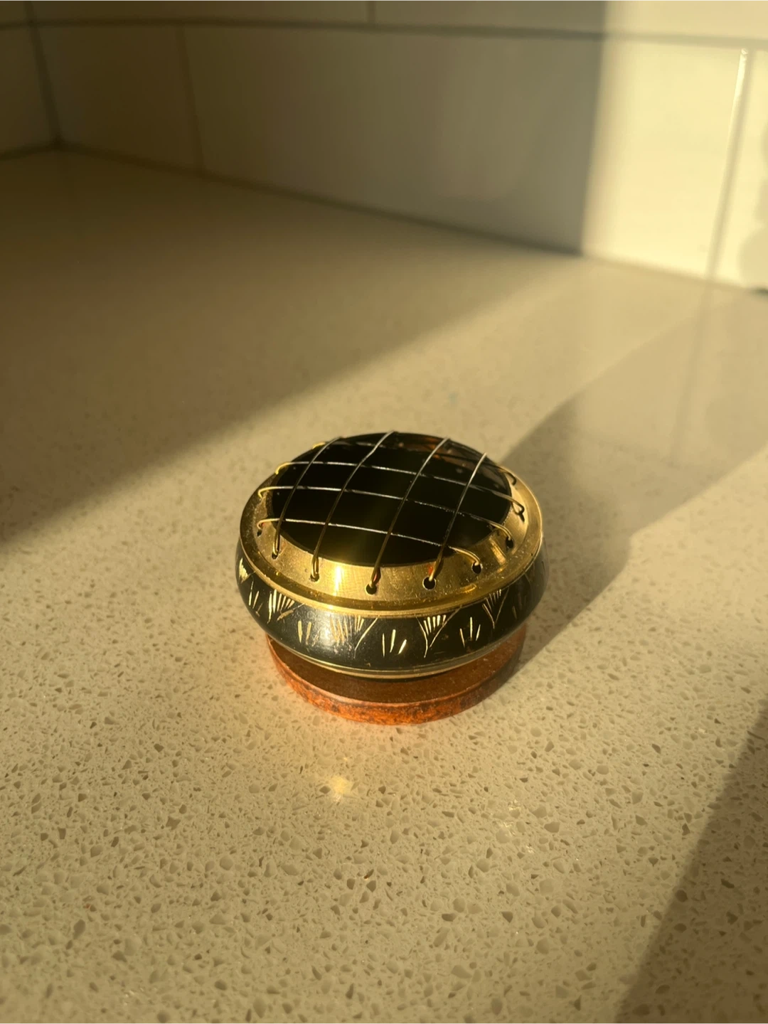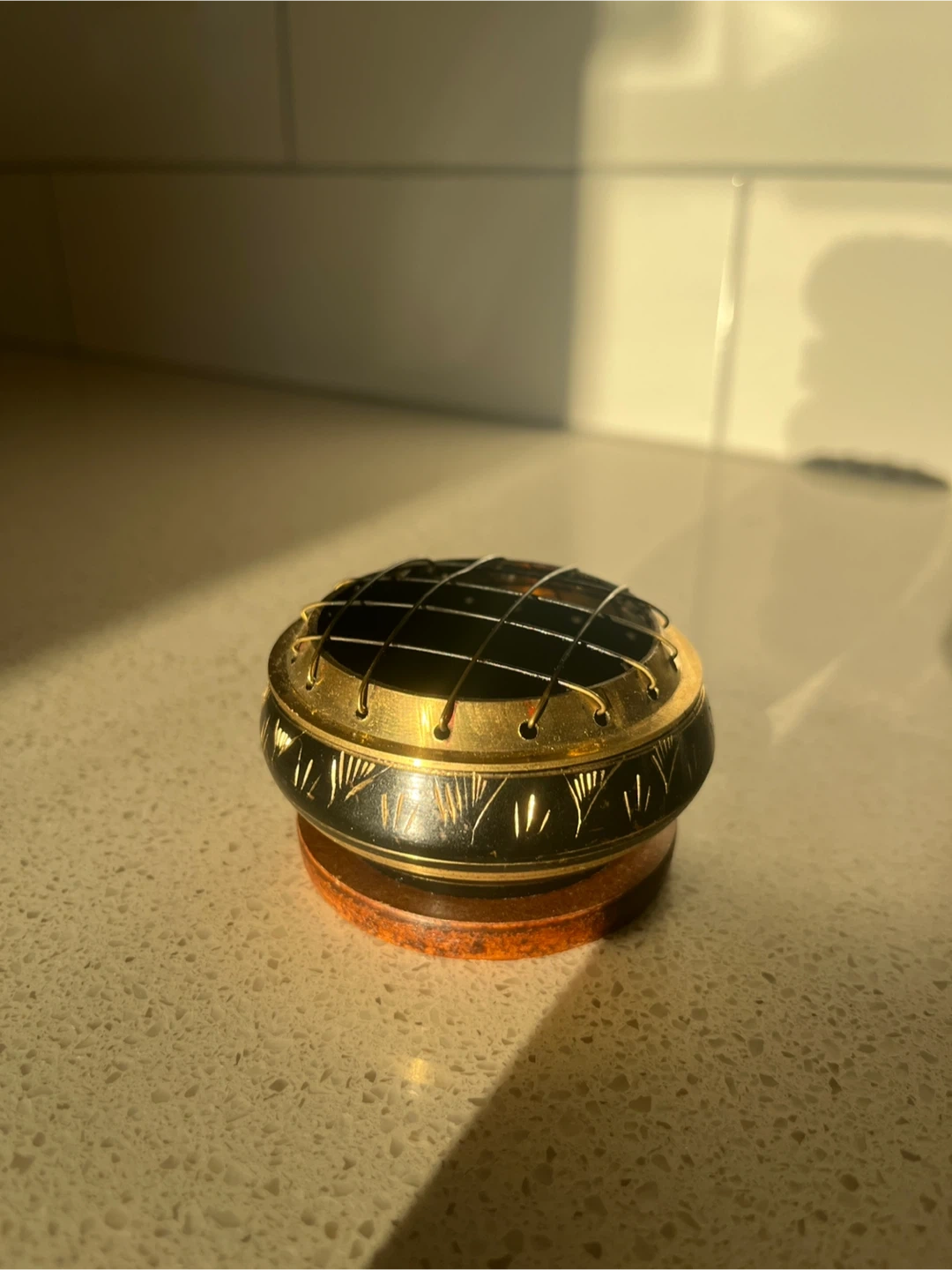 Selling a beautiful brass incense burner! It's in great condition and ready to bring a calming aroma to your space. The design features a black base with gold accents and a metal grate on top. Perfect for your favourite incense and also comes with complimentary incense from Dubai 😍