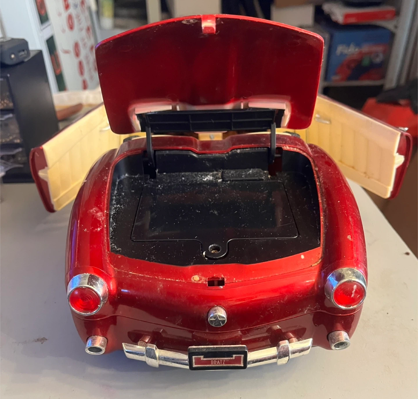 58Selling a Bratz convertible car in red! It has a cream interior and lots of fun details like opening doors and trunk. It's a bit dusty but otherwise in good shape for some Bratz adventures