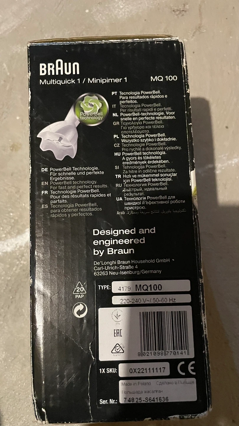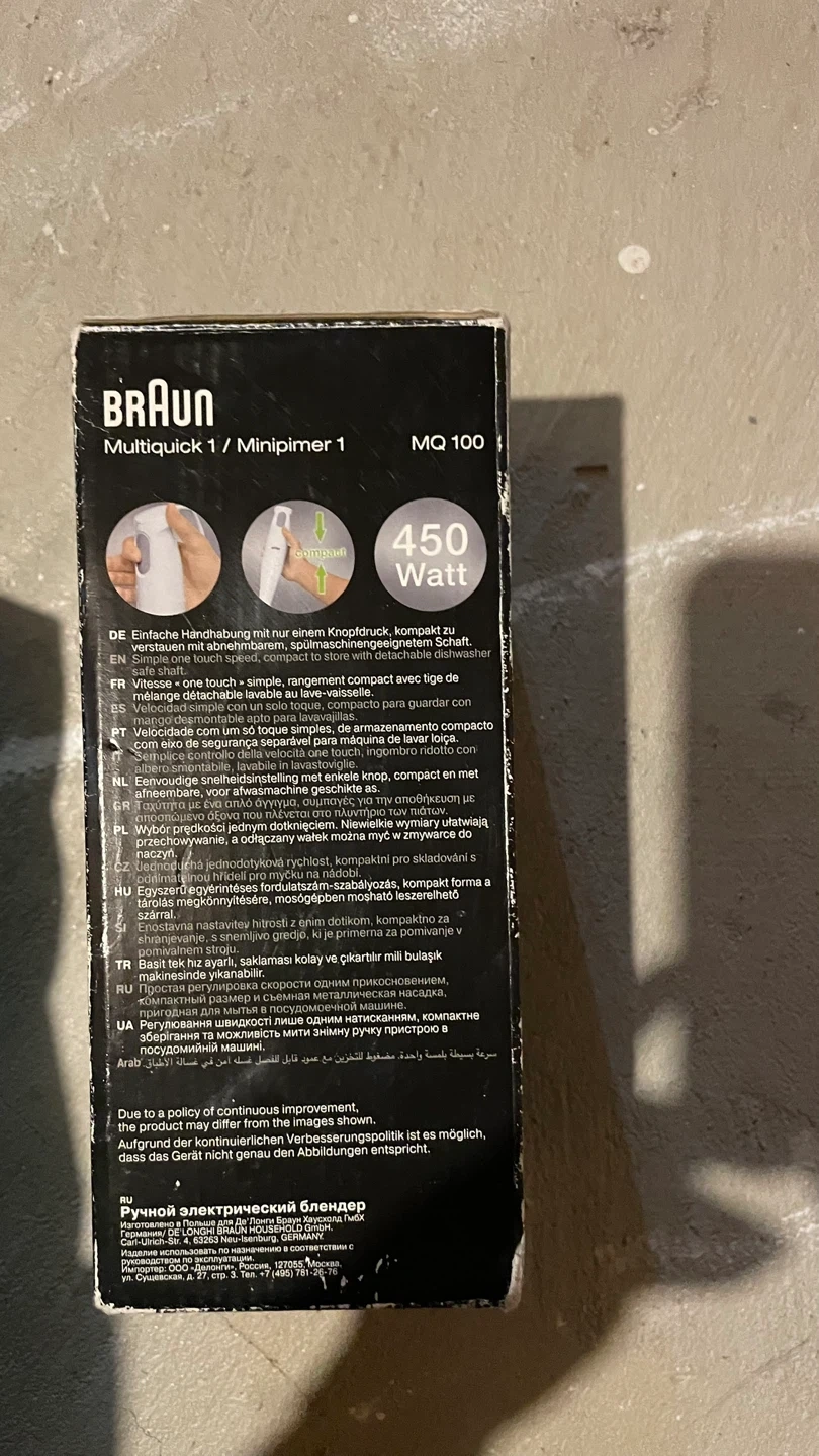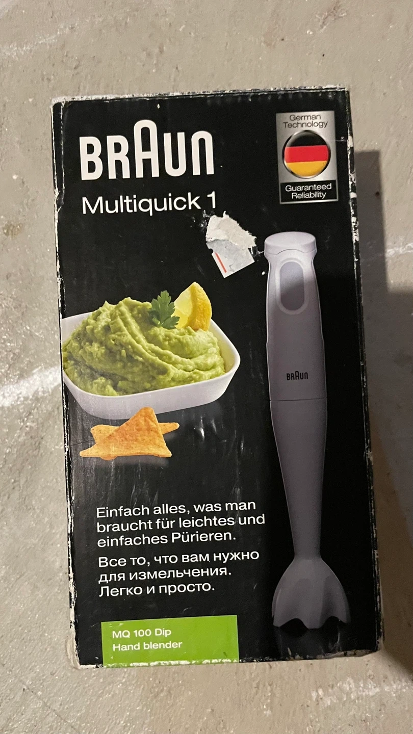 Selling a Braun Multiquick 1 MQ100 hand blender! It's a compact 450W hand blender that's easy to use for all your blending needs. It comes in the original box, ready for a new home