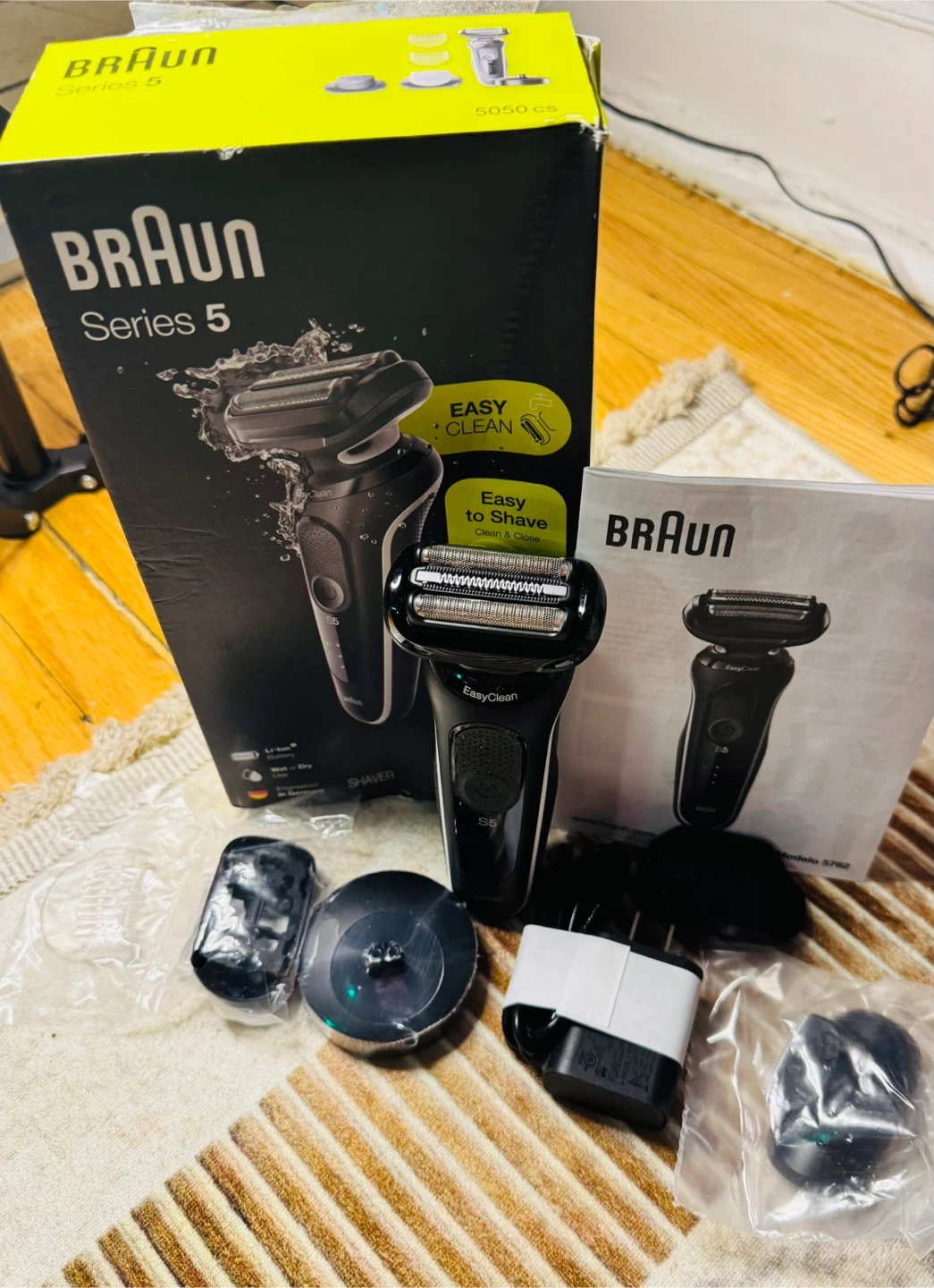 69Selling a Braun Series 5 electric shaver. It's in like-new condition and comes with all the original components and box. It's easy to clean and provides a close shave with its 3 flexible blades. The shaver features AutoSense Technology, a precision trimmer, and can be used wet or dry. Get a great shave with this engineered-in-Germany shaver!