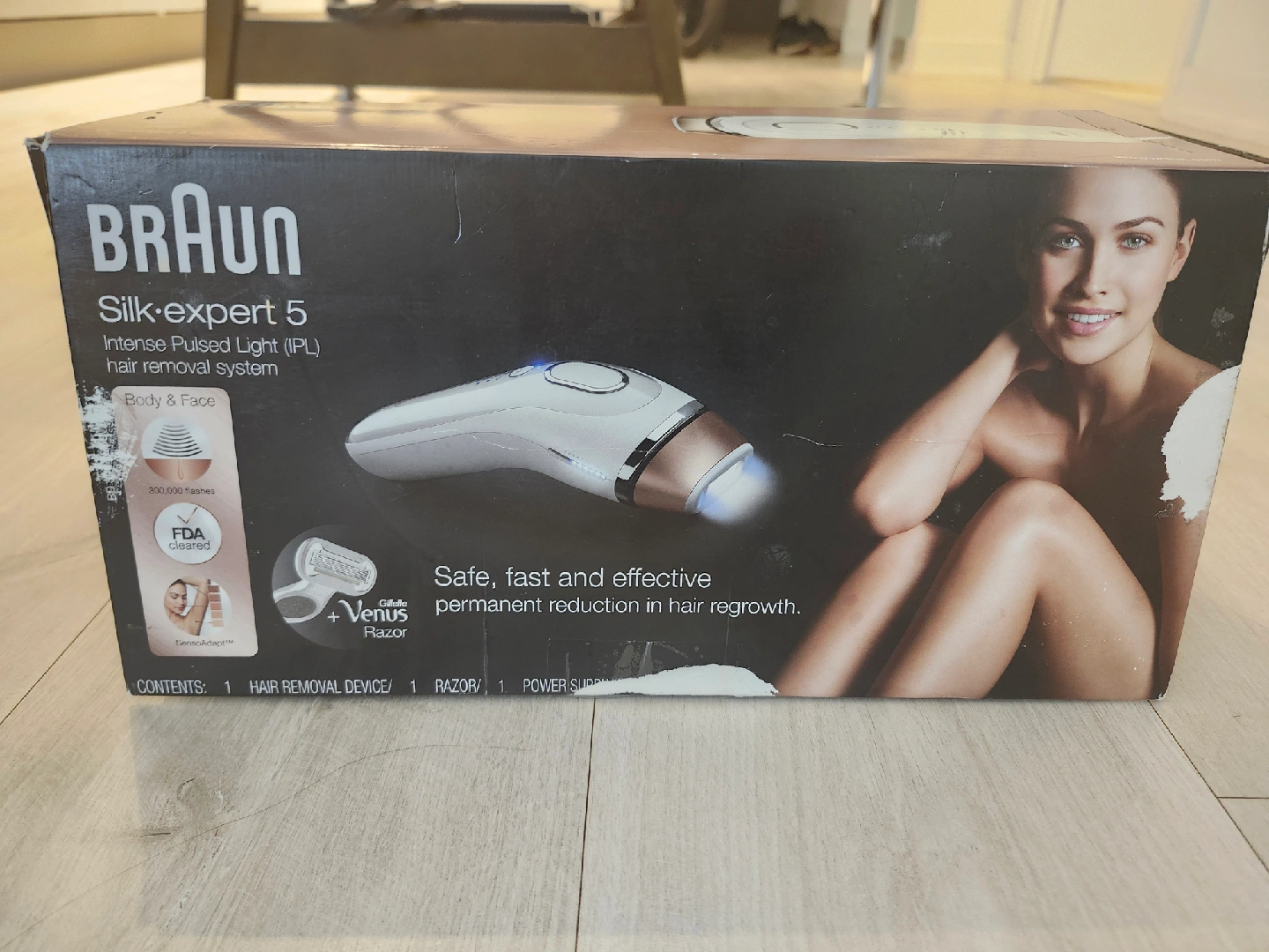 10Selling a Braun Silk-expert 5 Intense Pulsed Light (IPL) hair removal system. It's safe, fast, and effective for permanent reduction in hair regrowth. Includes 1 hair removal device, 1 razor, and 1 power supply. It adapts to your skin at every flash, and is FDA cleared!
