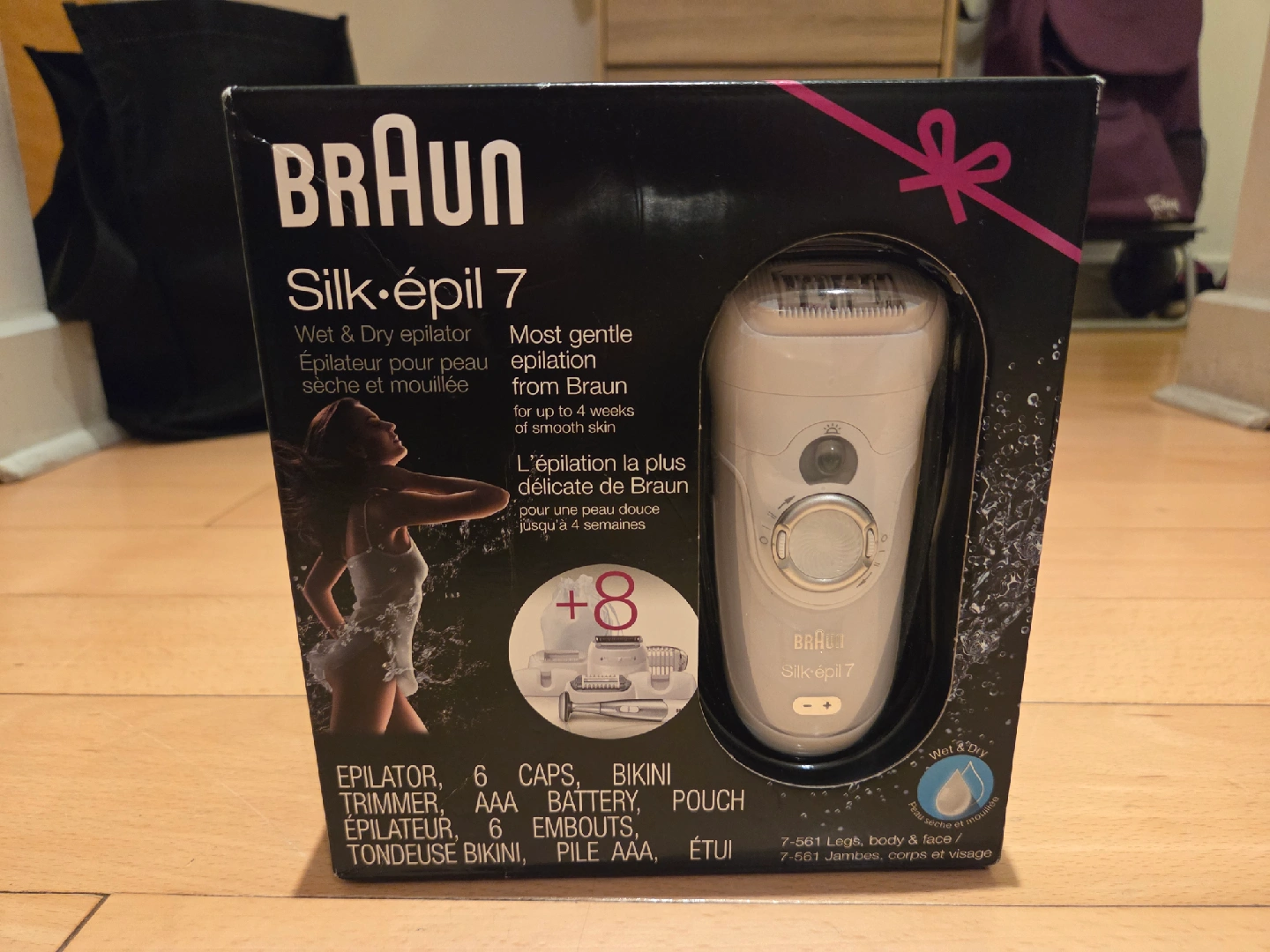 182Selling a Braun Silk-épil 7 Wet & Dry epilator! It comes with all the attachments, including the bikini trimmer, and the original box is included. It's designed for gentle epilation and provides up to 4 weeks of smooth skin. Also included is the charger and pouch for easy storage