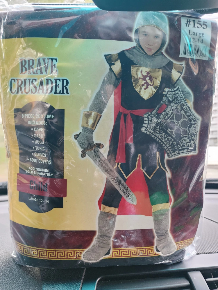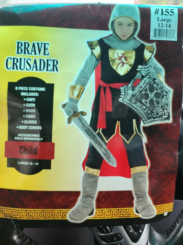 29Selling a Brave Crusader costume for kids! It's a size Large (12-14) and includes 8 pieces: cape, sash, hood, tunic, gloves, and boot covers Accessories NOT included Good as New. Pickup in Eastyork. I can deliver for for extra charge.