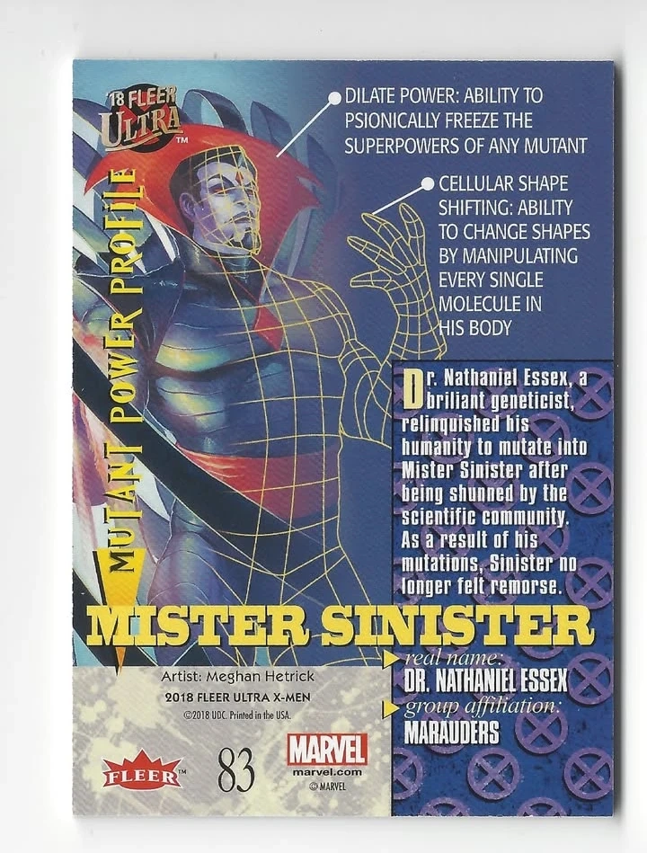 2018 Fleer Ultra X-Men Trading Card Villains #83 Mister Sinister