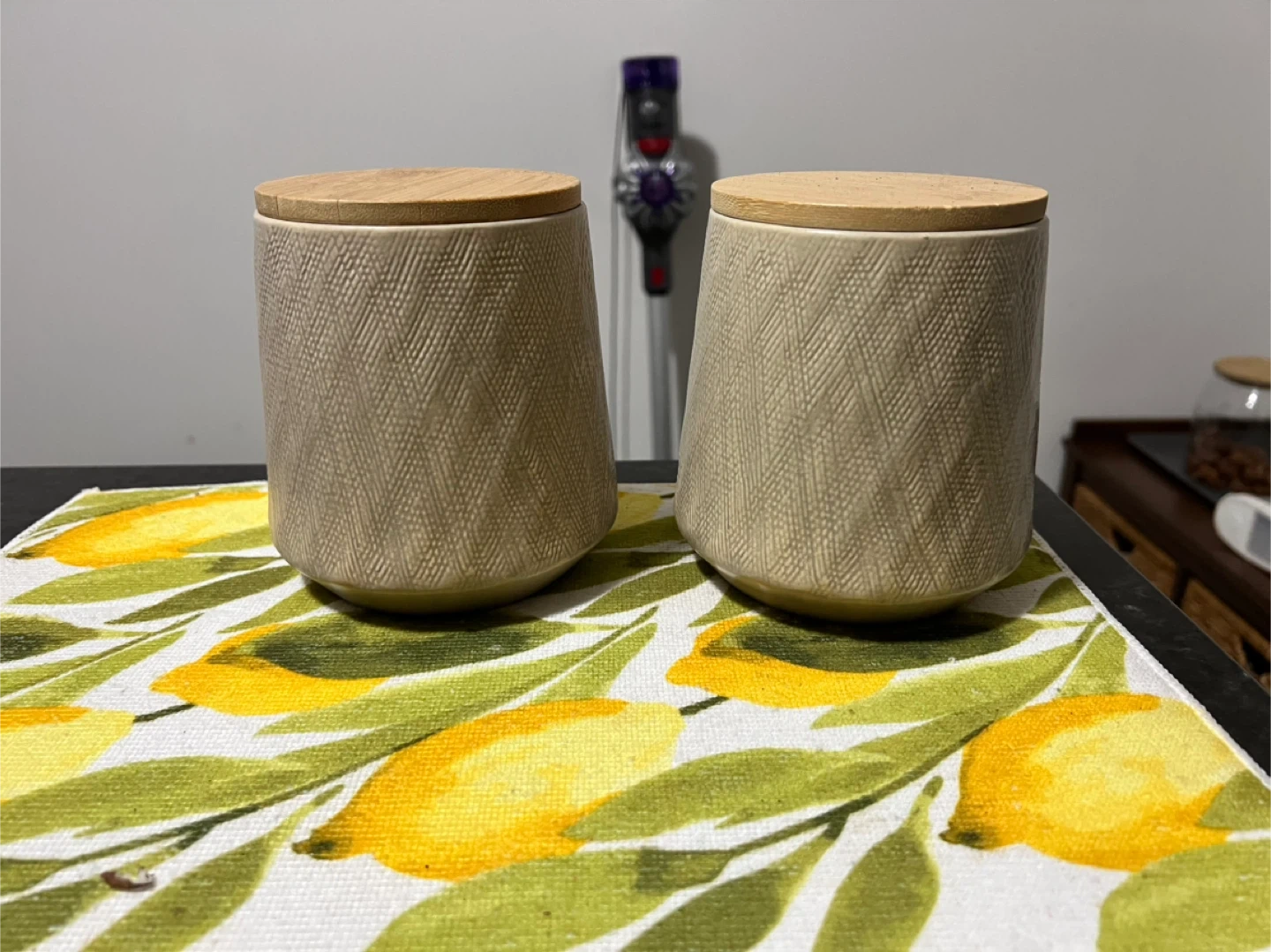 97Selling a pair of Bread+Butter Cucina canisters! They're made of porcelain and have a lovely wooden lid. They are also dishwasher and microwave safe! $15 for the pair.