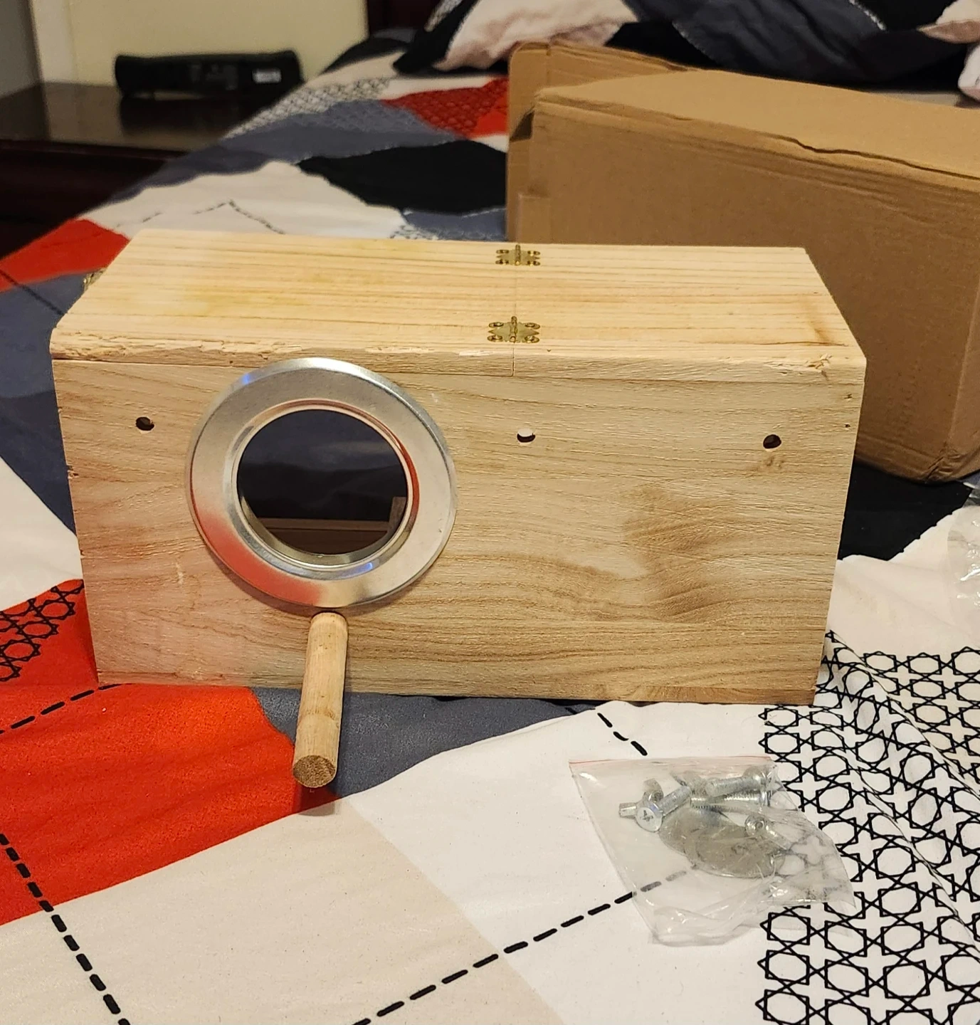 28Breeding box for budgies, lovebirds, conures and cockatiels There is 3 holes in the front and 2 in the side to attach it the the cage comes with box also.