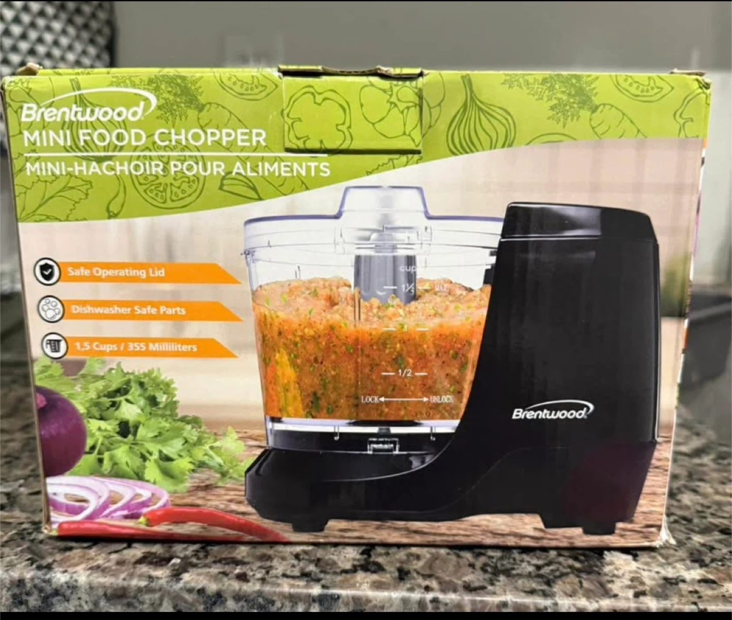 I'm selling a Brentwood Mini Food Chopper in new condition! It comes with its original box. Key features include: - Safe operating lid - Dishwasher safe parts - Capacity: 1.5 cups / 355 milliliters