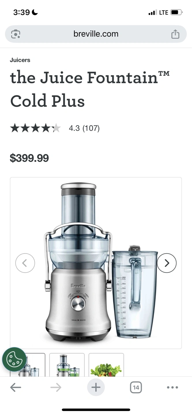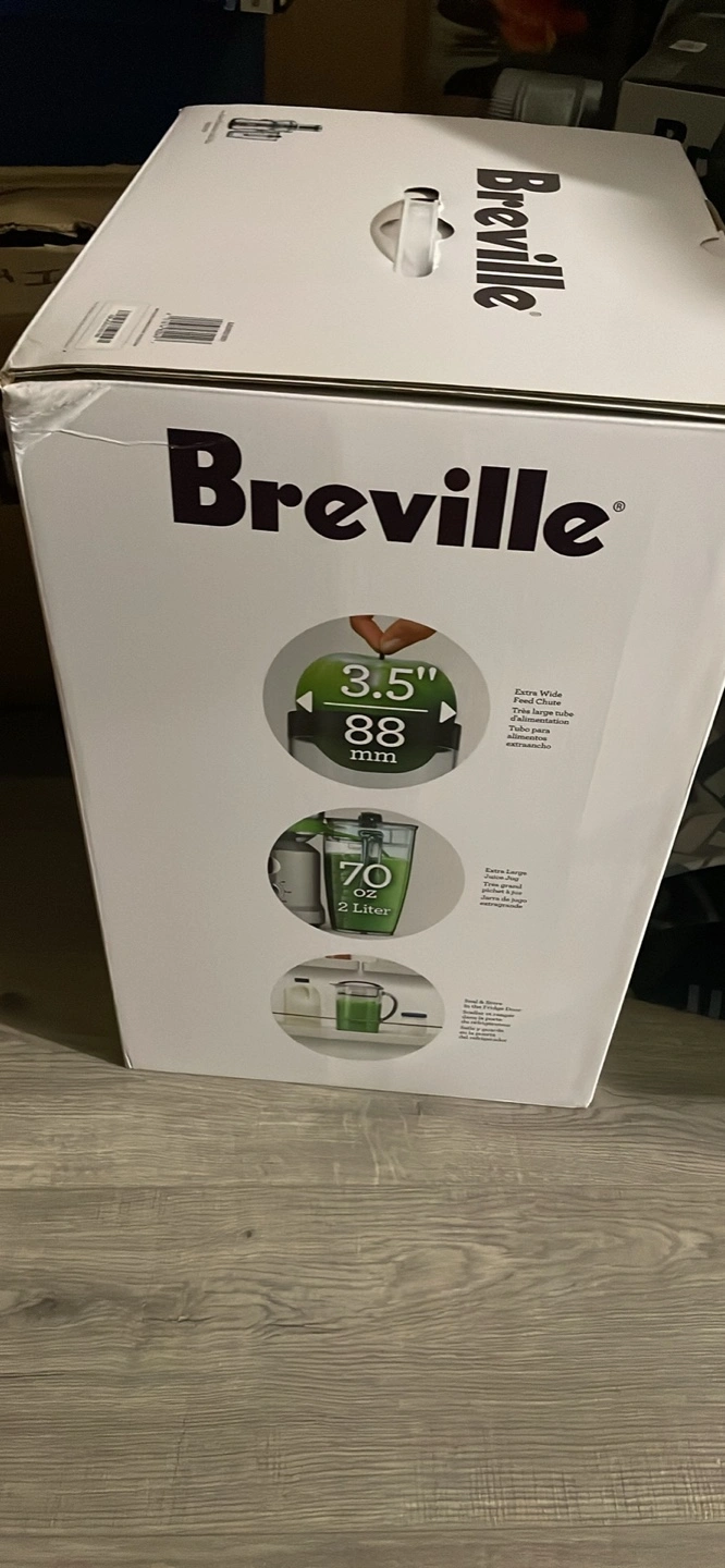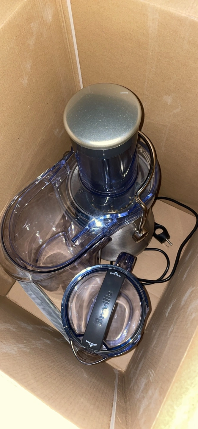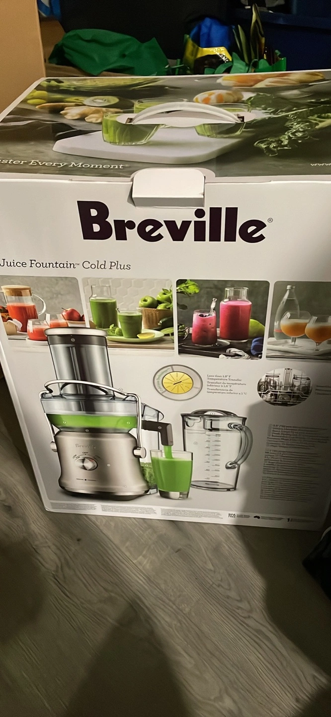 10VERY gently used Breville Juice Fountain Cold Plus juicer. Still have original packaging. Includes all parts and accessories. Makes fresh juice quickly and efficiently. Large capacity pulp container and juice jug.