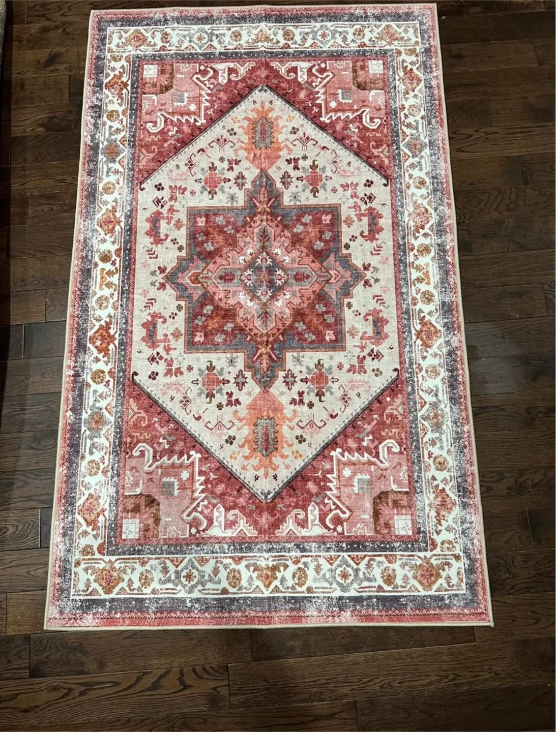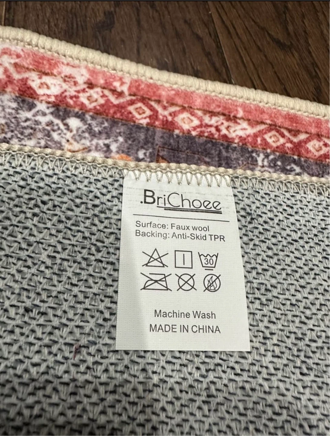 Selling a BriChoee area rug with a faux wool surface! It has an anti-skid TPR backing, so it stays in place. It's also machine washable, which is super convenient 5’*3’