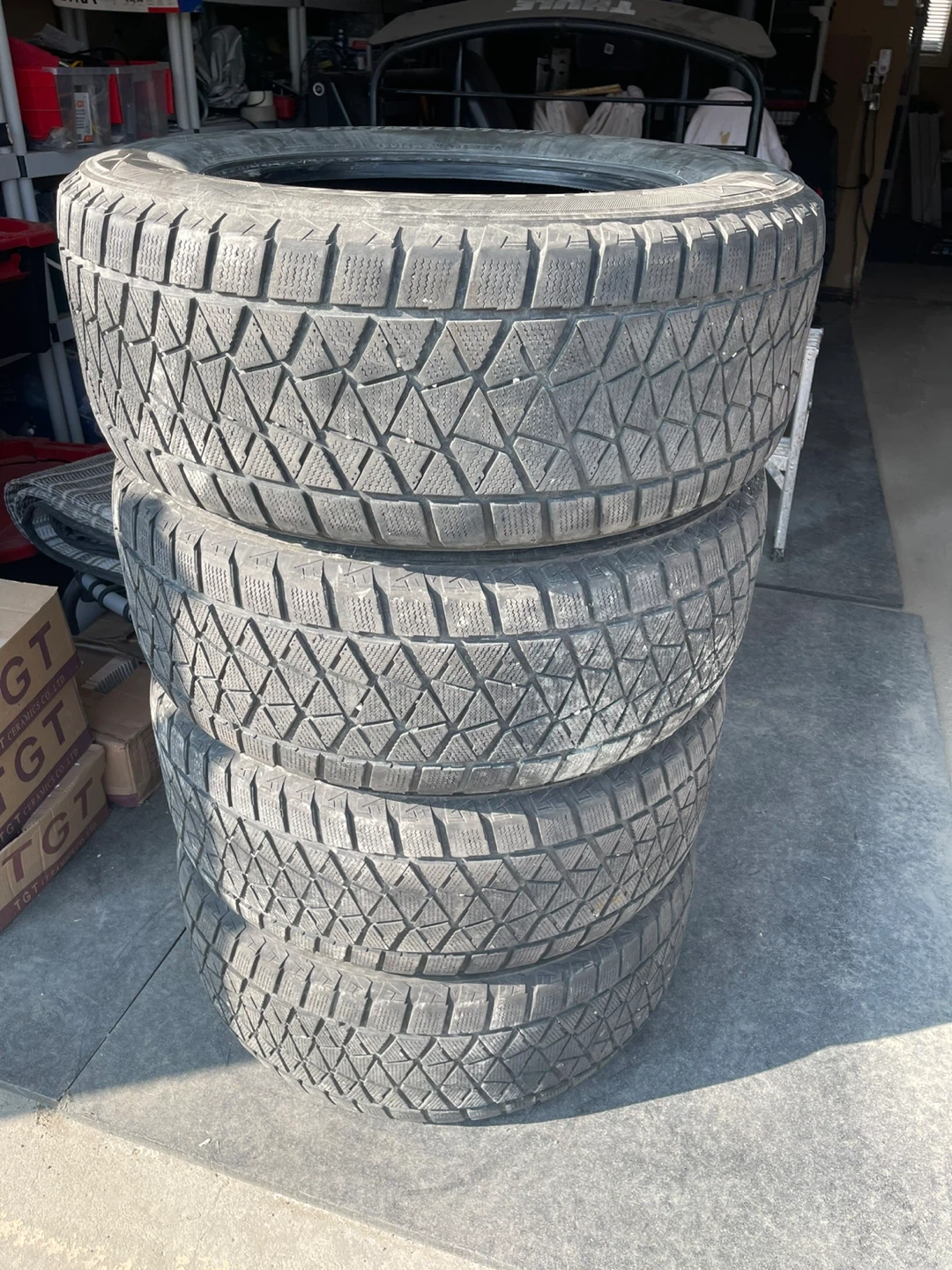 10Selling a set of Bridgestone Blizzak DM-V2 winter tires. Size is 285/60R18. These tires are tubeless and radial, made in Japan.