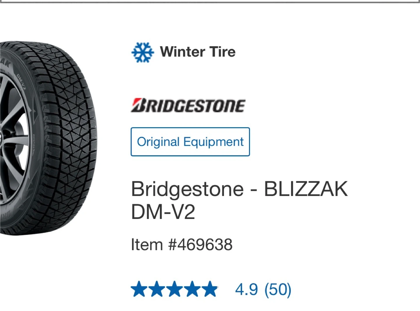 85Selling a Bridgestone Blizzak DM-V2 winter tire! Perfect for the upcoming snowy season. It's in great shape and ready to be used as original equipment. *Tire Size : 215/70R16 x 4ea. *Bought at Costco year ago