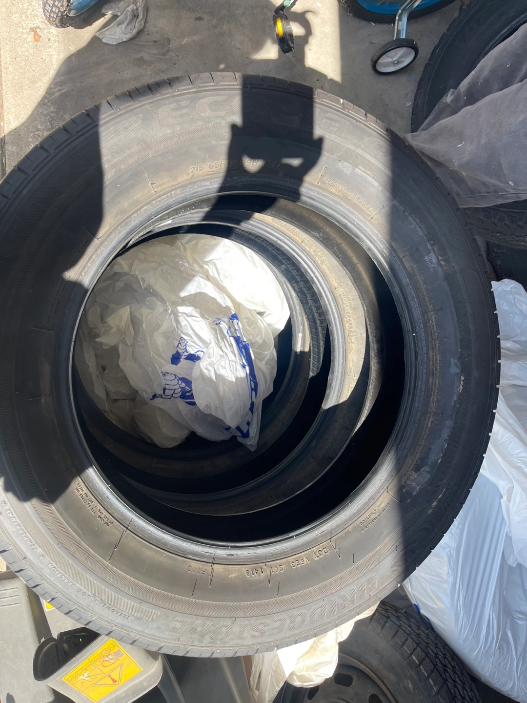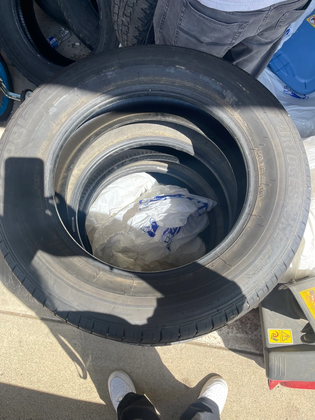 Selling a set of Bridgestone tires. The size is 215/65R17. Good for all seasons!