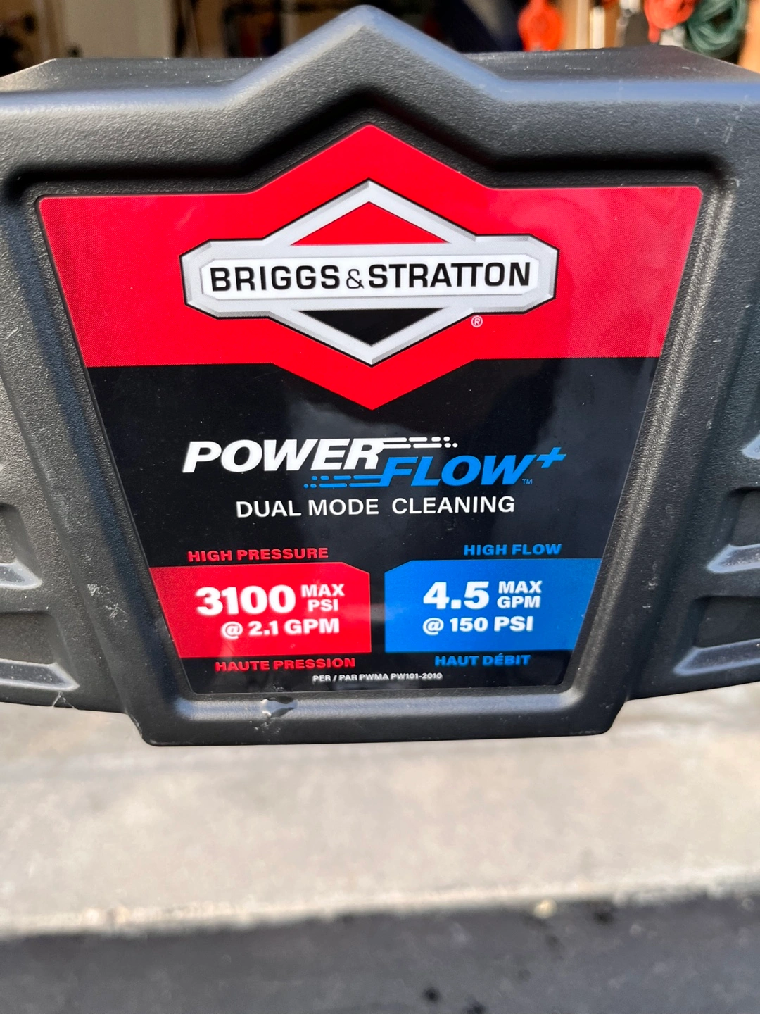 10Great condition only used a few times. Retail price over $500 Check link below: https://www.lowes.com/pd/Briggs-Stratton-3100-PSI-2-1-Gallon-GPM-Cold-Water-Gas-Pressure-Washer-CARB/5013598769 Features PowerFlow-plus Technology Dual Mode Cleaning – use the High Pressure or High Flow mode depending on the job at hand High pressure 3100 MAX PSI at 2. 1 GPM / High flow 4. 5 MAX GPM at 150 PSI Powered by a trusted Briggs & Stratton EXi875 Series engine Just Check & Add technology - means you’ll never change the oil for the life of the engine