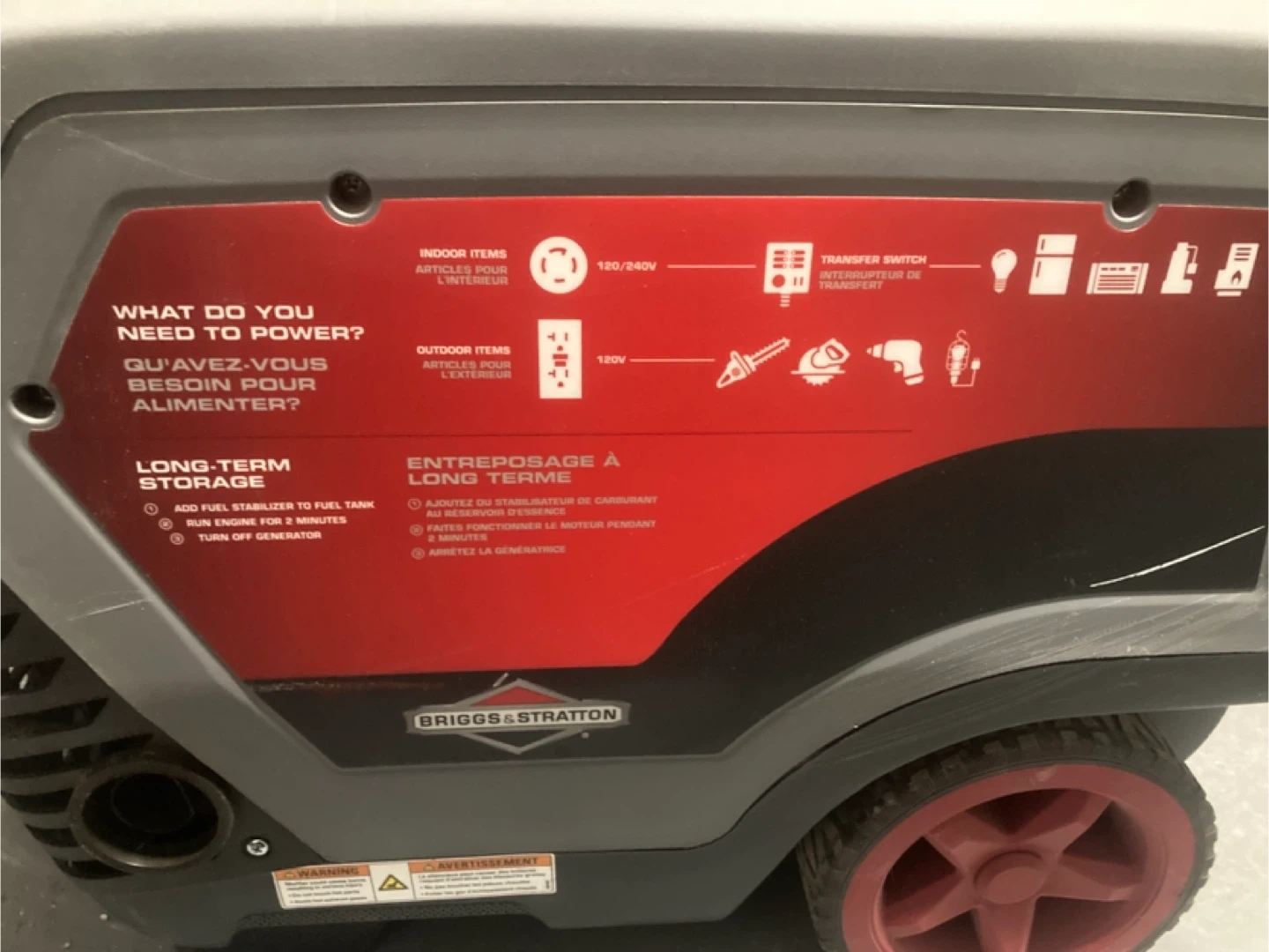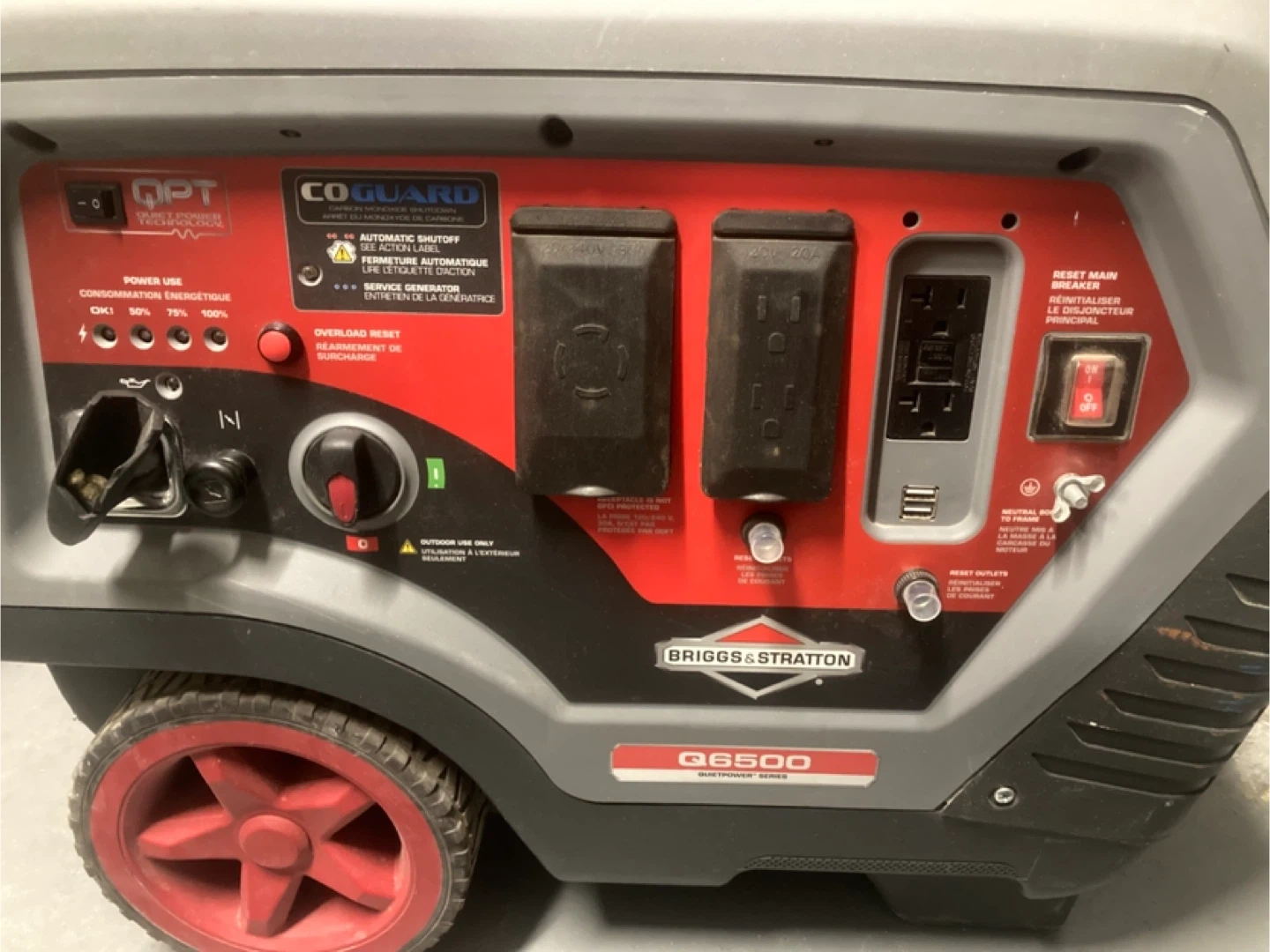 Selling a Briggs & Stratton Q6500 Inverter Generator. This powerful generator is perfect for indoor and outdoor use. It features a transfer switch and long-term storage options.