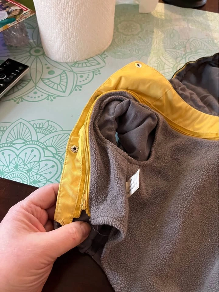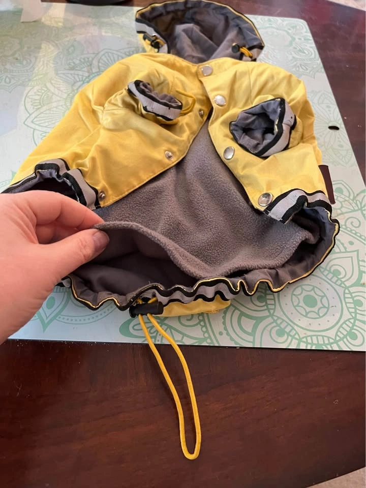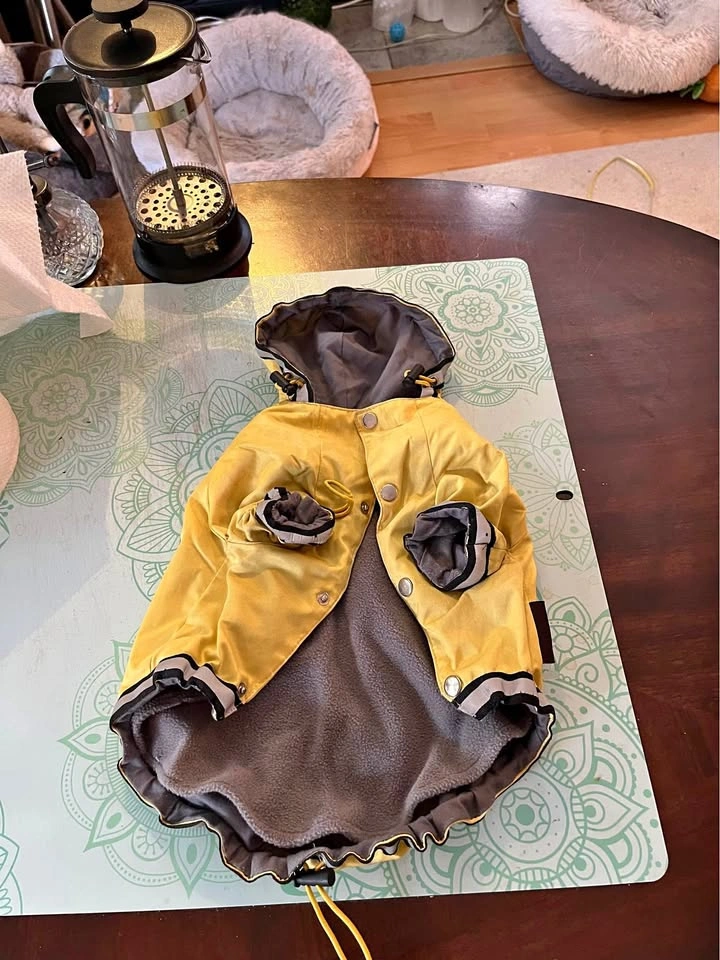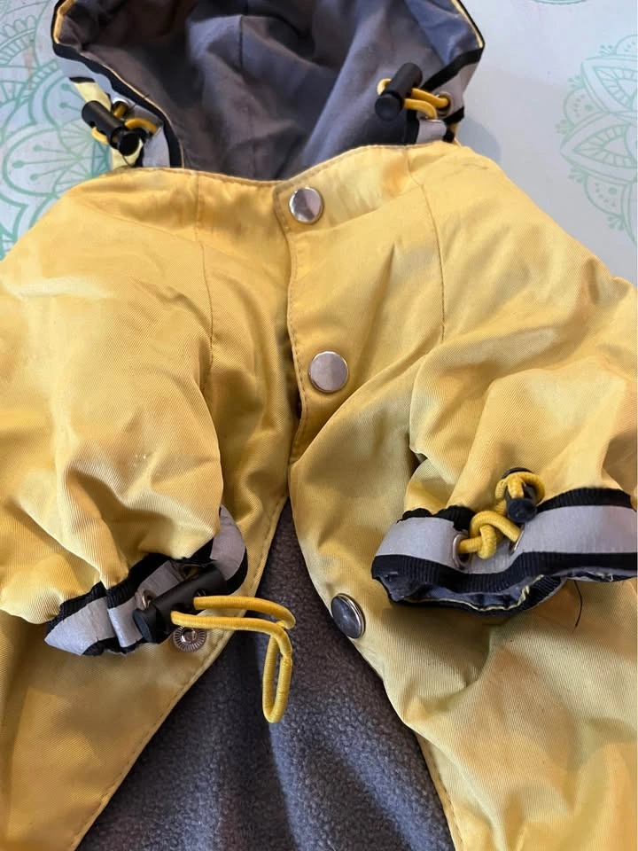 65Bright Yellow Dog 🐶 Jacket w/ detachable warm lining-Medium $26 Features: Bright color for visibility Easy on & off design Hood with draw string closure Body & legs have draw string closures for a better fit. Snap pouch for doggydoo bags. Opening slit for leash Snap closures I’m located in East Cloverdale near 188 th Street and 64 avenue in Surrey.