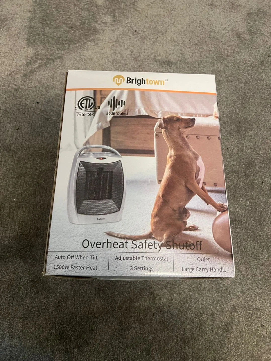 Selling a Brightown heater, featuring overheat safety shutoff! It also has an adjustable thermostat and is quiet, operating at 50dB. Other features include: - Auto off when tilted - 1500W faster heat - 3 settings - Large carry handle