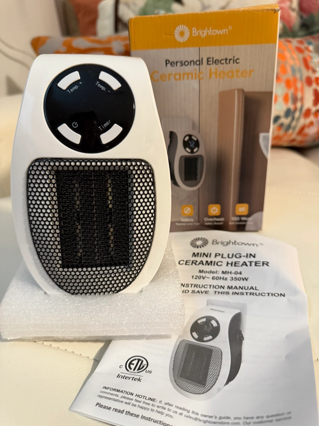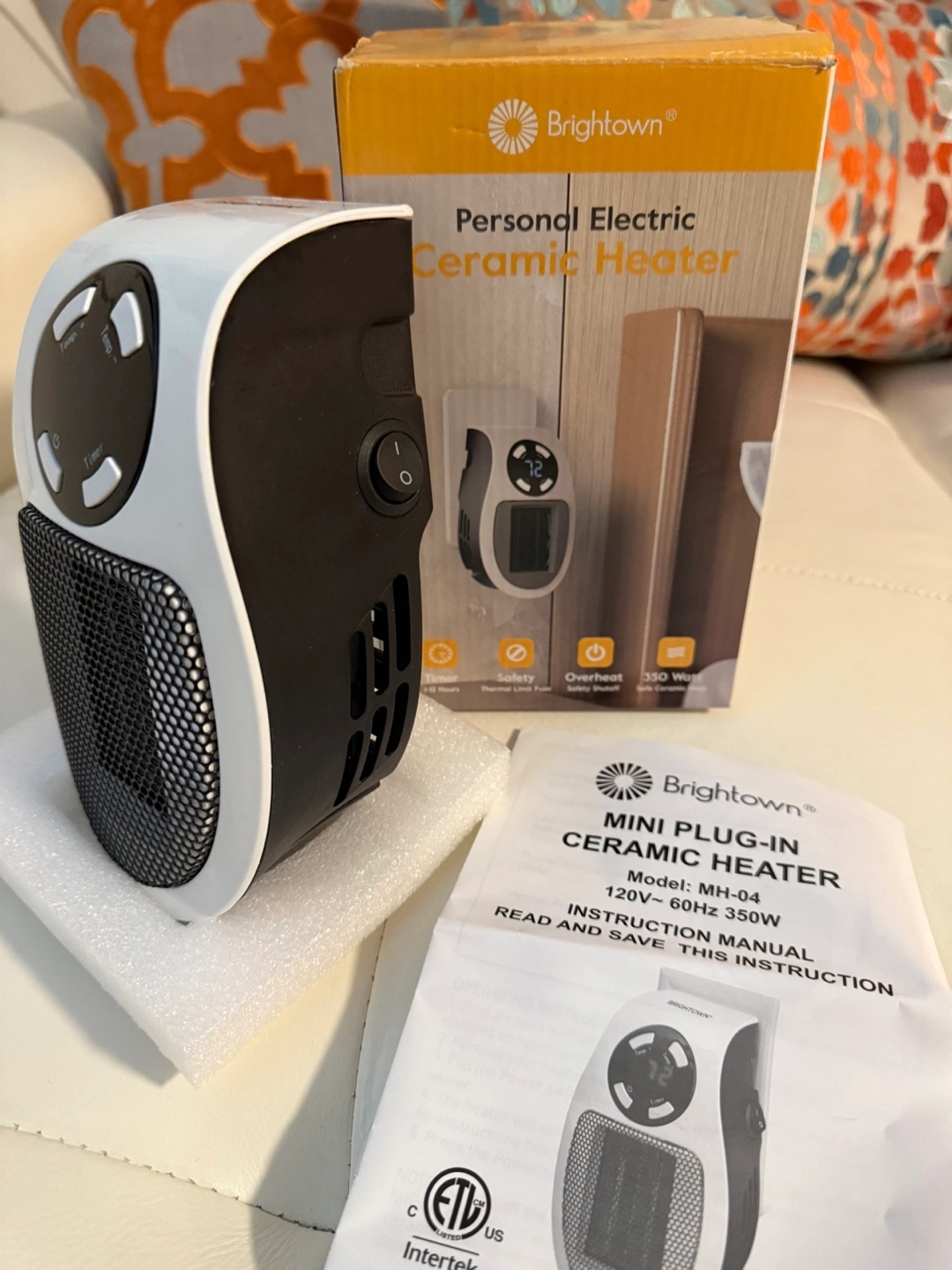 55Portable personal electric ceramic heater. Compact design. Features timer and temperature control. New in box.