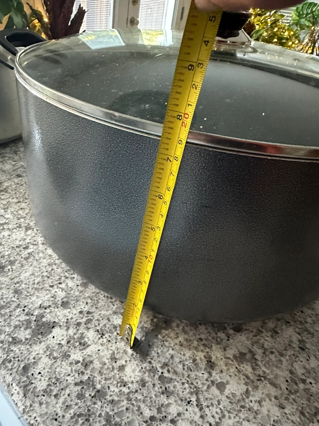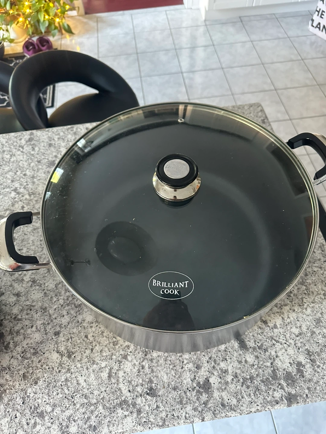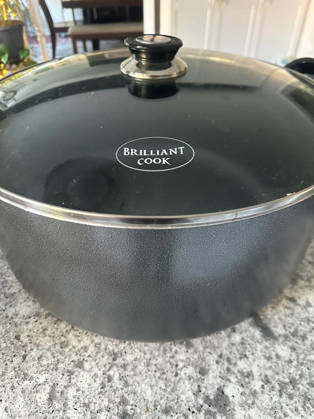 10Selling a Brilliant Cook stock pot. It comes with a lid. It measures approximately 12 inches in diameter and 7 inches in height. Great for making soups and stews!