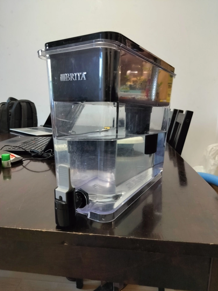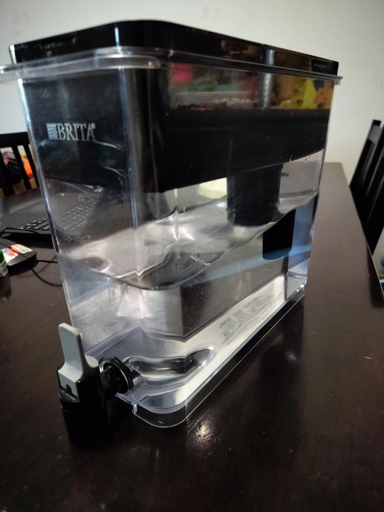 Brita water filter dispenser in good condition! Capacity - 27 cups. Comes with electronic indicator to show when it is time to change the filter. Also included - Two NEW Brita filters. Pick up at 23 Cox Boulevard Markham.