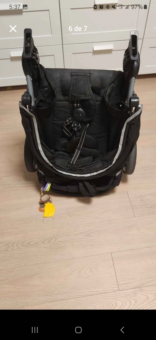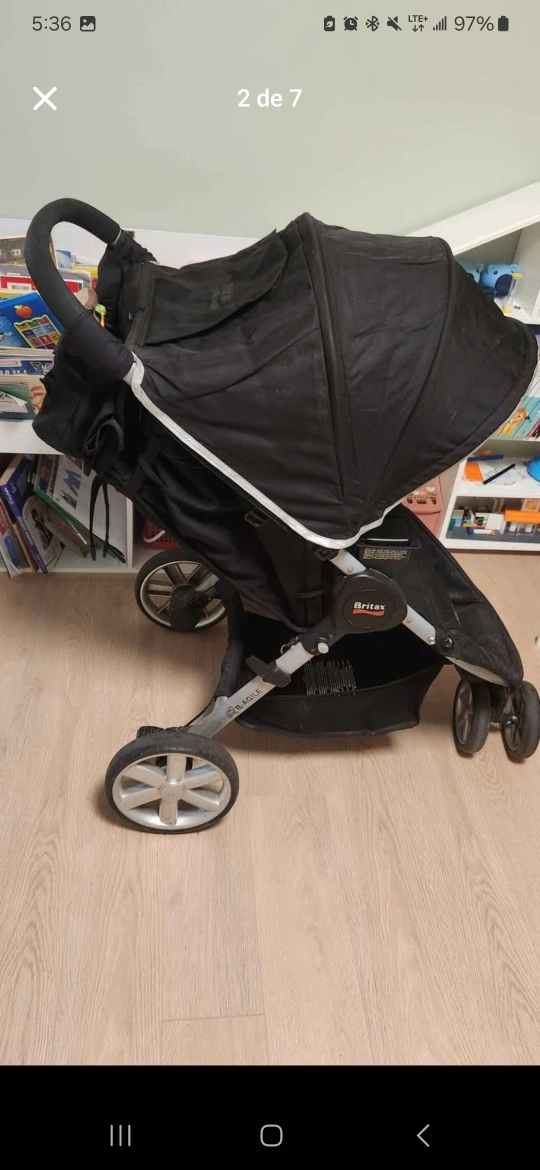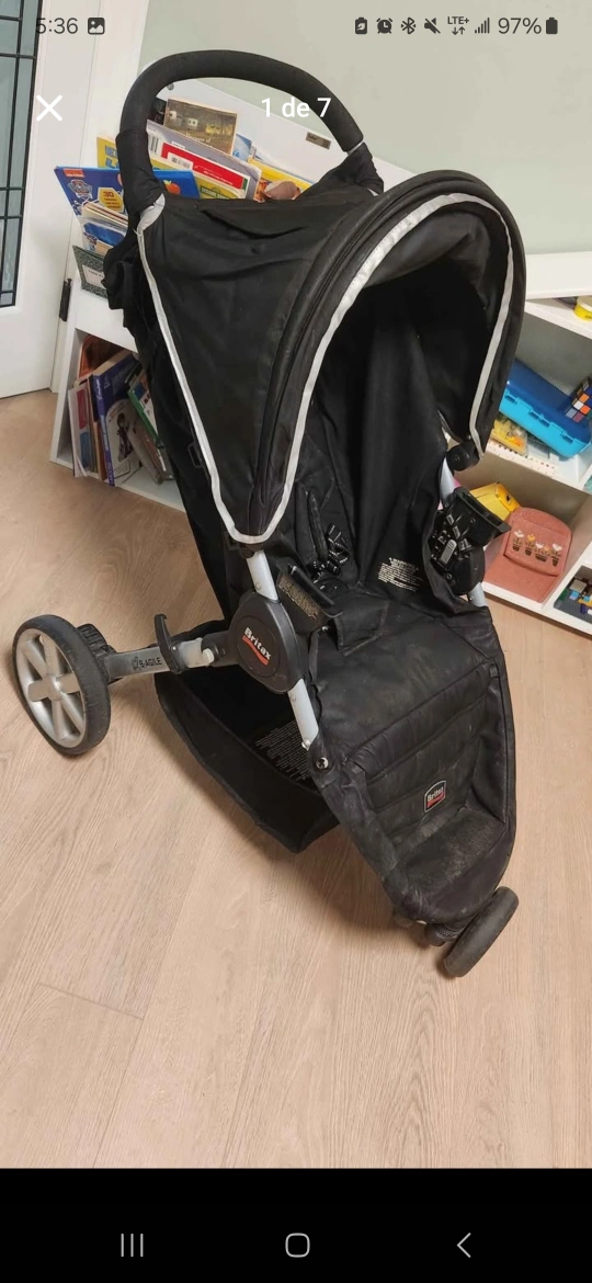 Selling a Britax B-Agile stroller in black. It's in good used condition and ready for a new home. This stroller is lightweight and easy to maneuver, perfect for city living or travel. It has a spacious storage basket underneath for all your essentials. It also folds up easily for convenient storage and transport. Britax stroller organizer included.