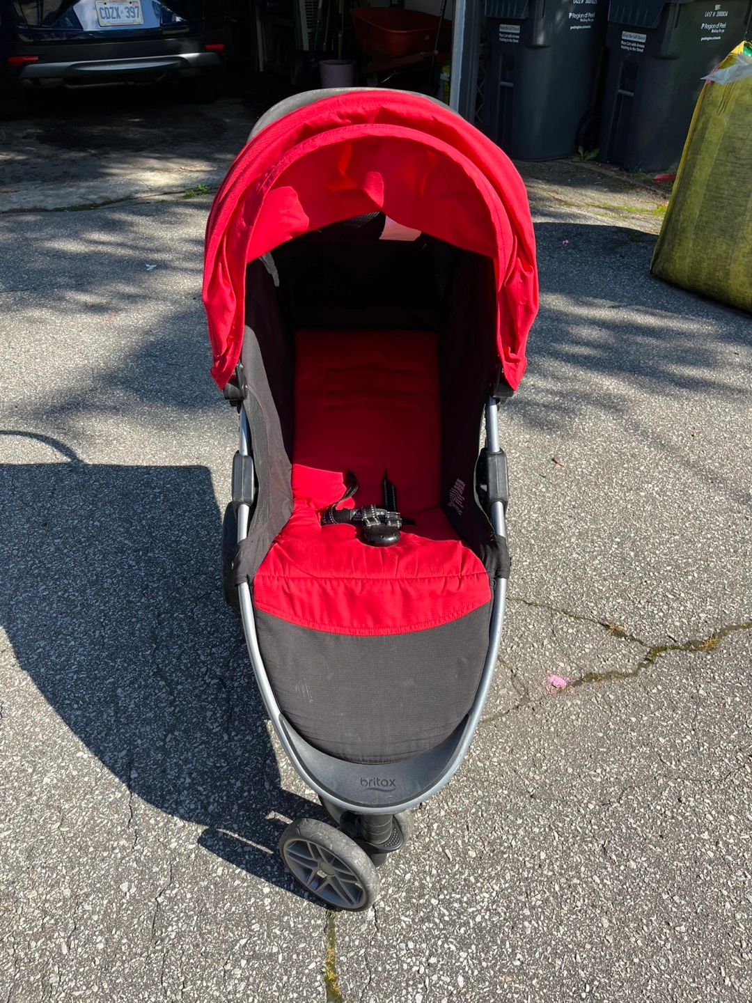 Selling a Britax B-Agile stroller in red and black. It's in good condition and ready for its next little passenger! Includes the stroller itself and the pictured accessories.