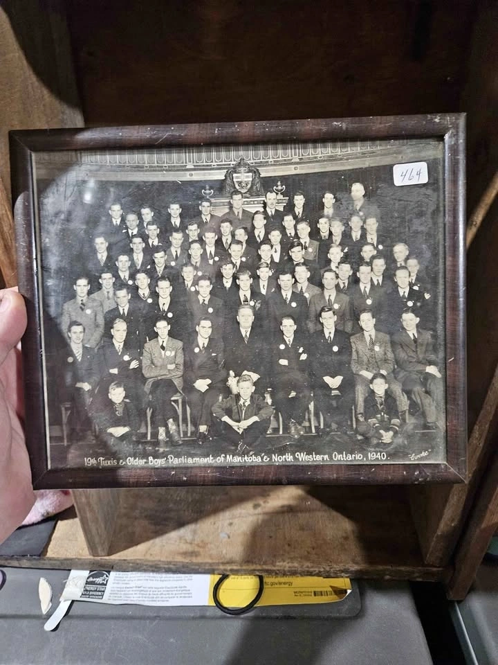 Caption reads: “19th Tuxis & Older Boys’ Parliament of Manitoba & North Western Ontario, 1940”.