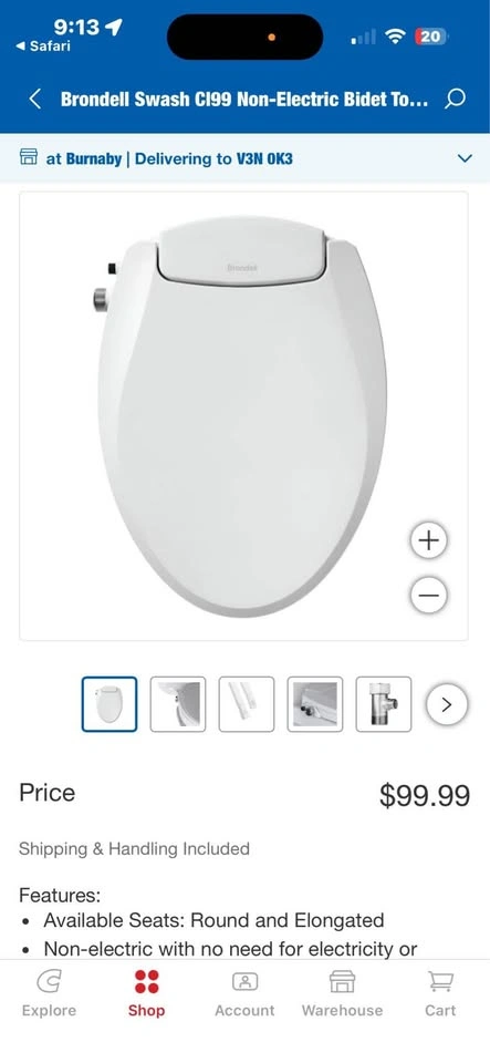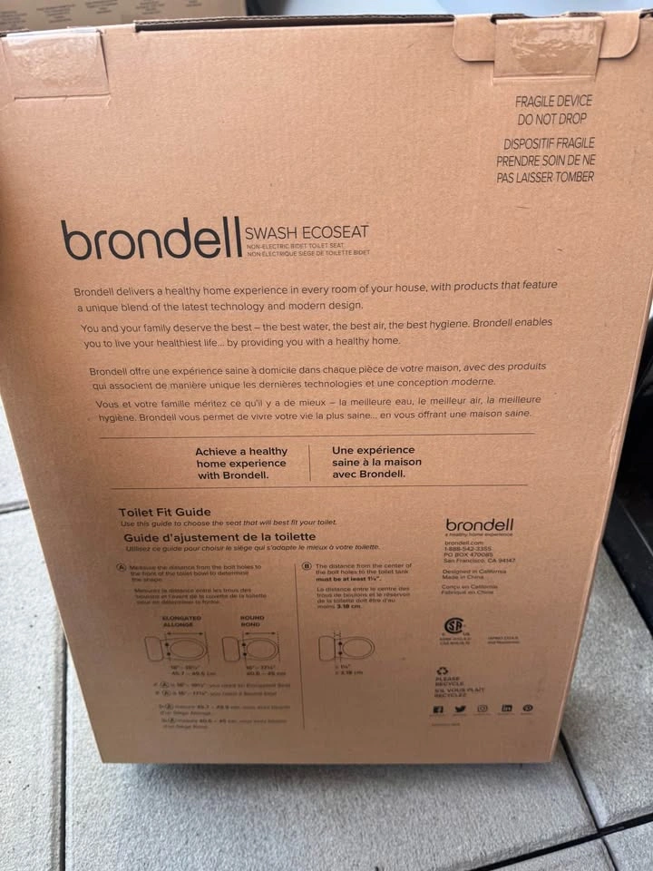 Update: Only 1 round available. Please read carefully—this item is not brand new, but in like-new condition! I have one round Brondell non-electric bidet attachment available. It is in mint condition and works perfectly. We recently moved to a new apartment and no longer need it. These are non-electric bidets, designed to connect directly to your toilet’s water line. They offer a clean, refreshing wash using water pressure, with adjustable nozzles for personalized hygiene. No electricity or batteries are needed—just a simple and effective way to upgrade your bathroom experience. Costco price: $99+ tax My price: $60. Not sure whether you need a round or elongated model? Check out this helpful guide to learn the difference: https://www.brondell.com/blog/round-vs-elongated-toilet-seat/