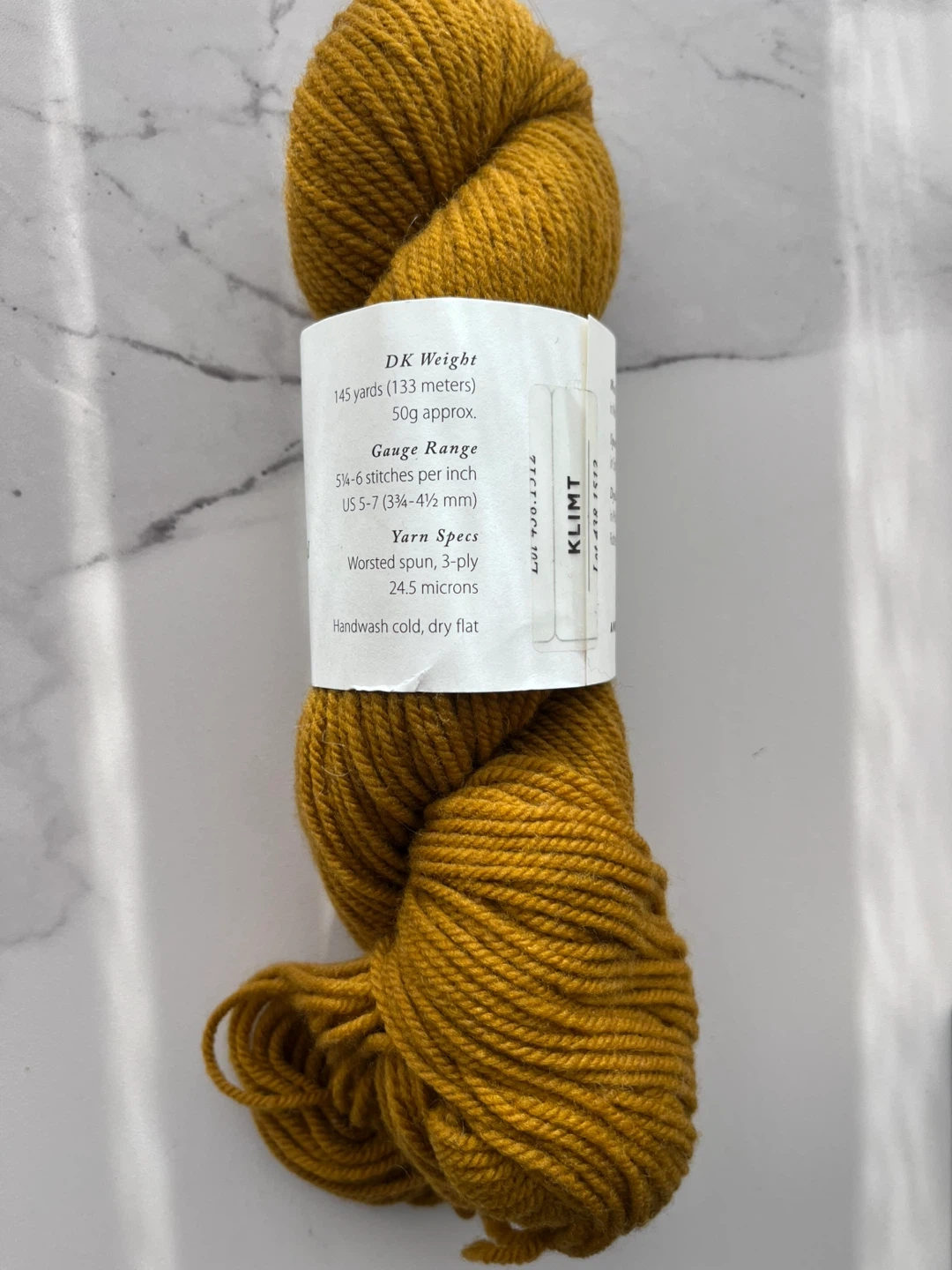245Selling a skein of Brooklyn Tweed Arbor yarn in the Klimt colourway! It's 100% American Targhee Wool. - DK weight - 145 yards (133 meters) - 50g approx - Gauge Range: 5¼ - 6 stitches per inch - Yarn Specs: Worsted spun, 3-ply, 24.5 microns - Handwash cold, dry flat