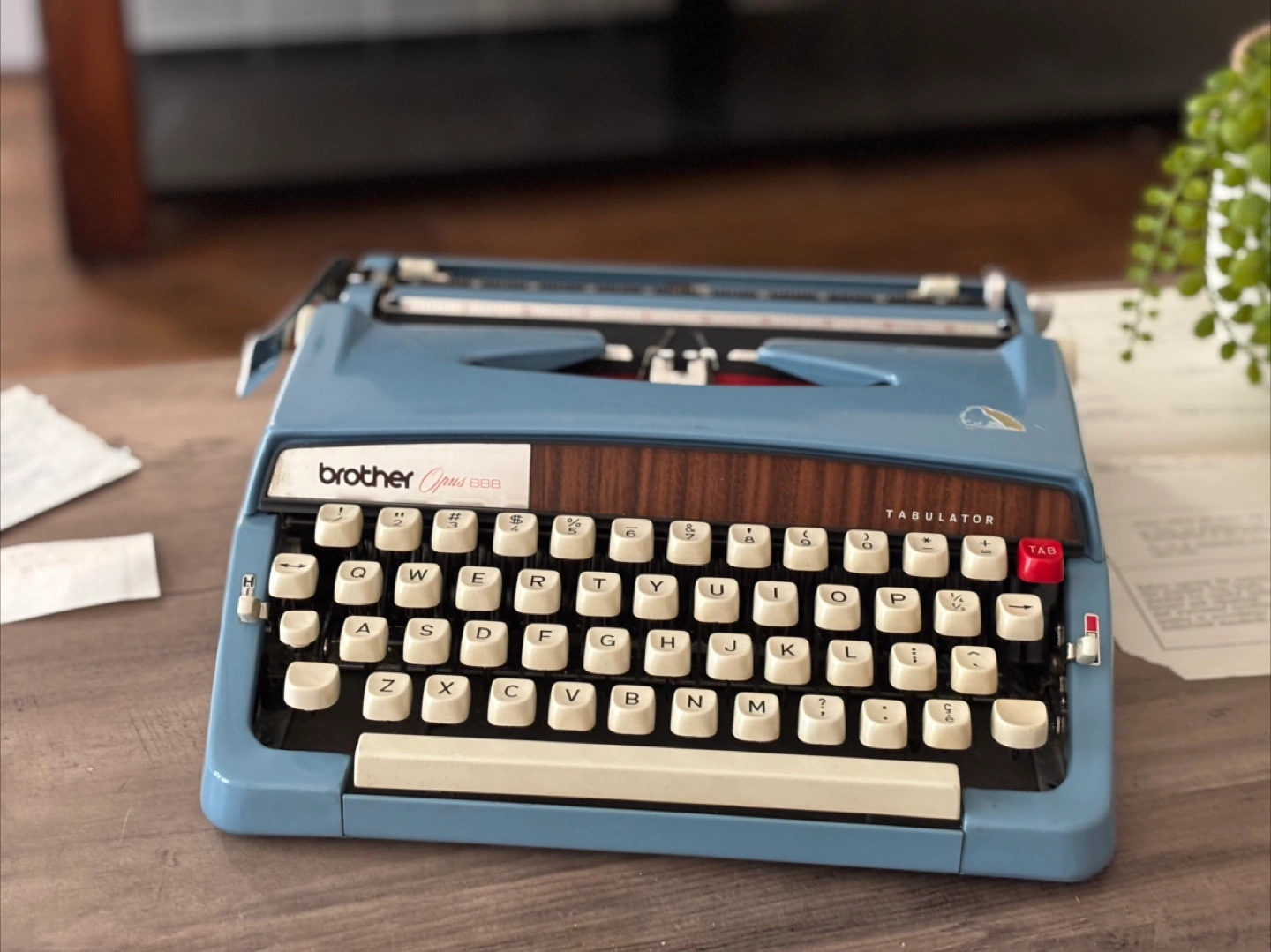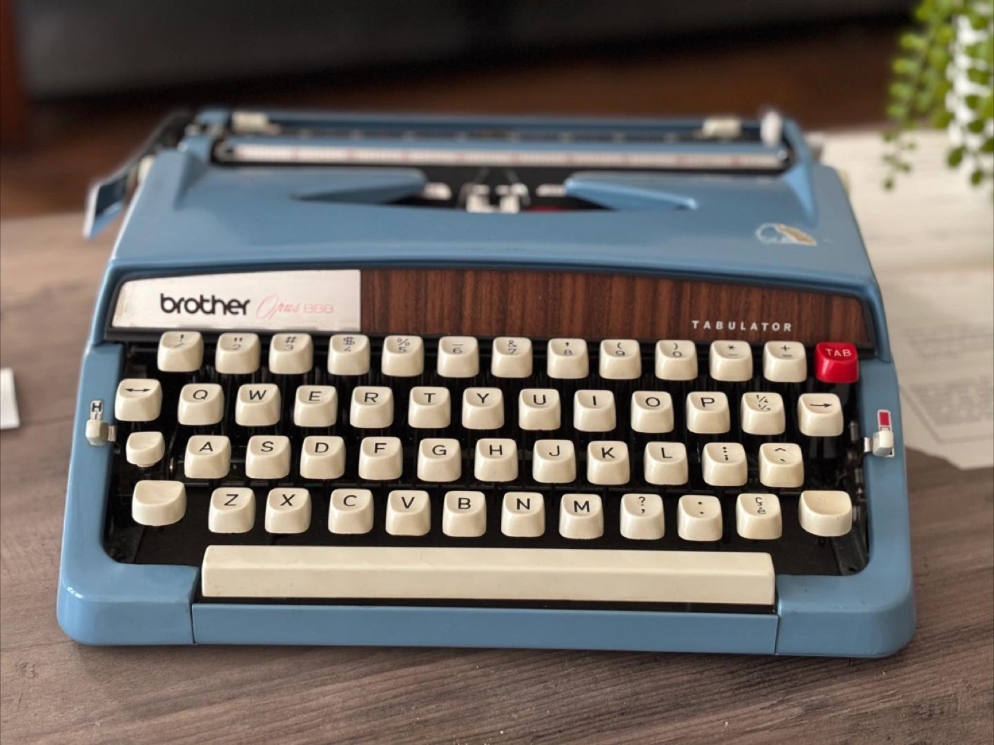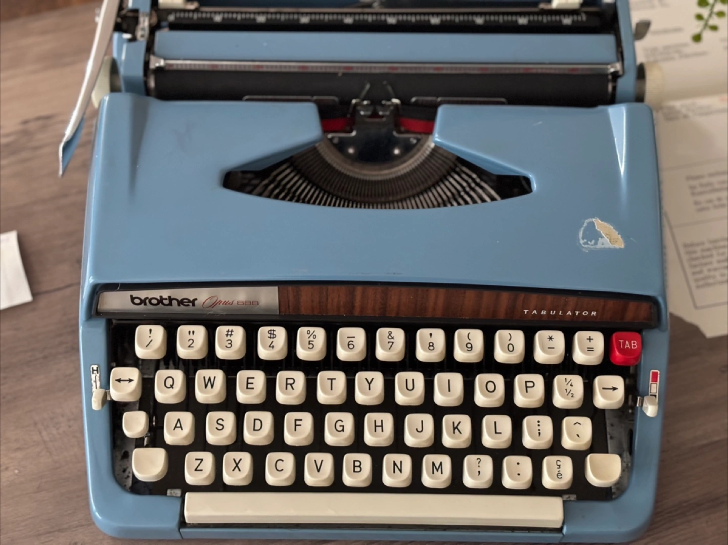 Selling a vintage Brother Opus 888 typewriter in a lovely light blue colour. It's a charming piece and would look great in a home office or as a decorative item. Ready for a new home!