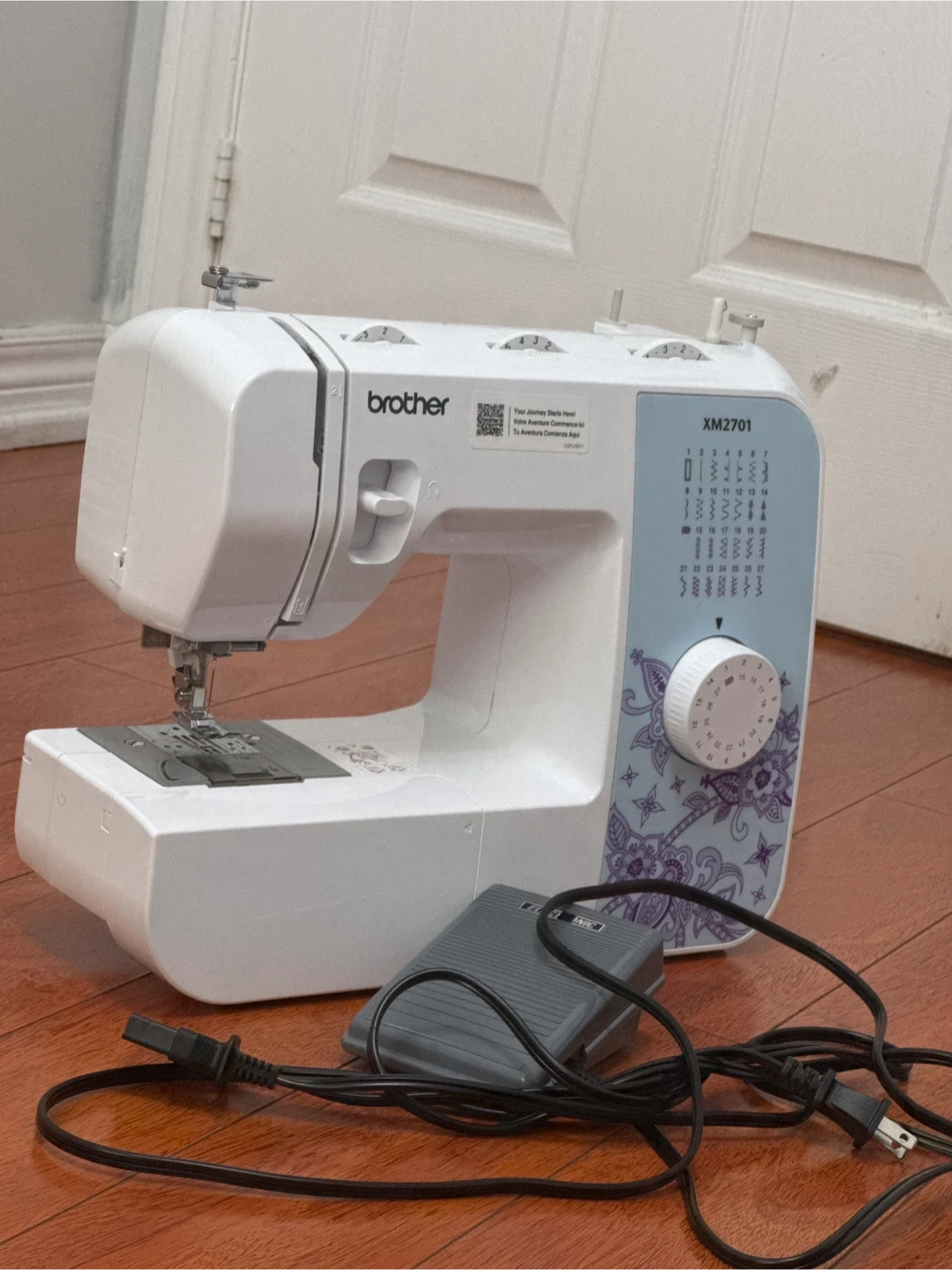Barely used sewing machine for sale and I can give iron press for free with this. I can give iron press free with this and I have so many threads as well. Contact at (647)649-3820