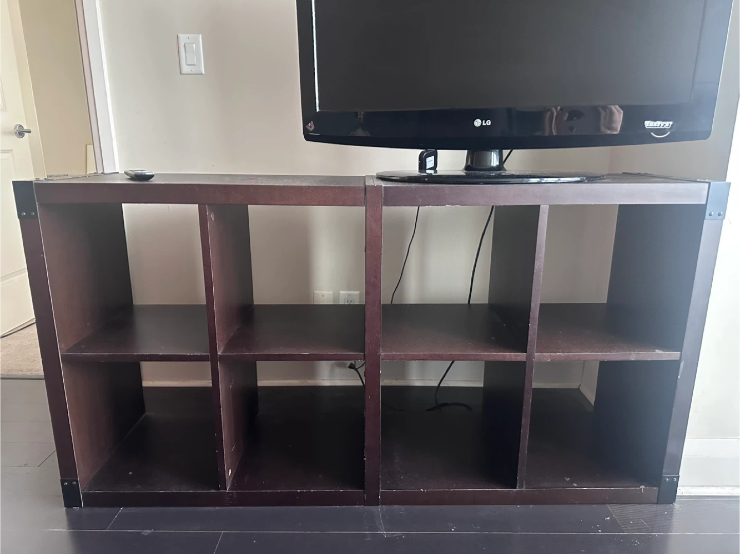 111Looking to sell this brown storage shelf. It has 8 cubes and is great for organizing your space. There are some signs of wear and tear on the top, as shown in the pictures, but it's still sturdy and functional. Asking $50 OBO Pick up at Islington & Queensway Cash only