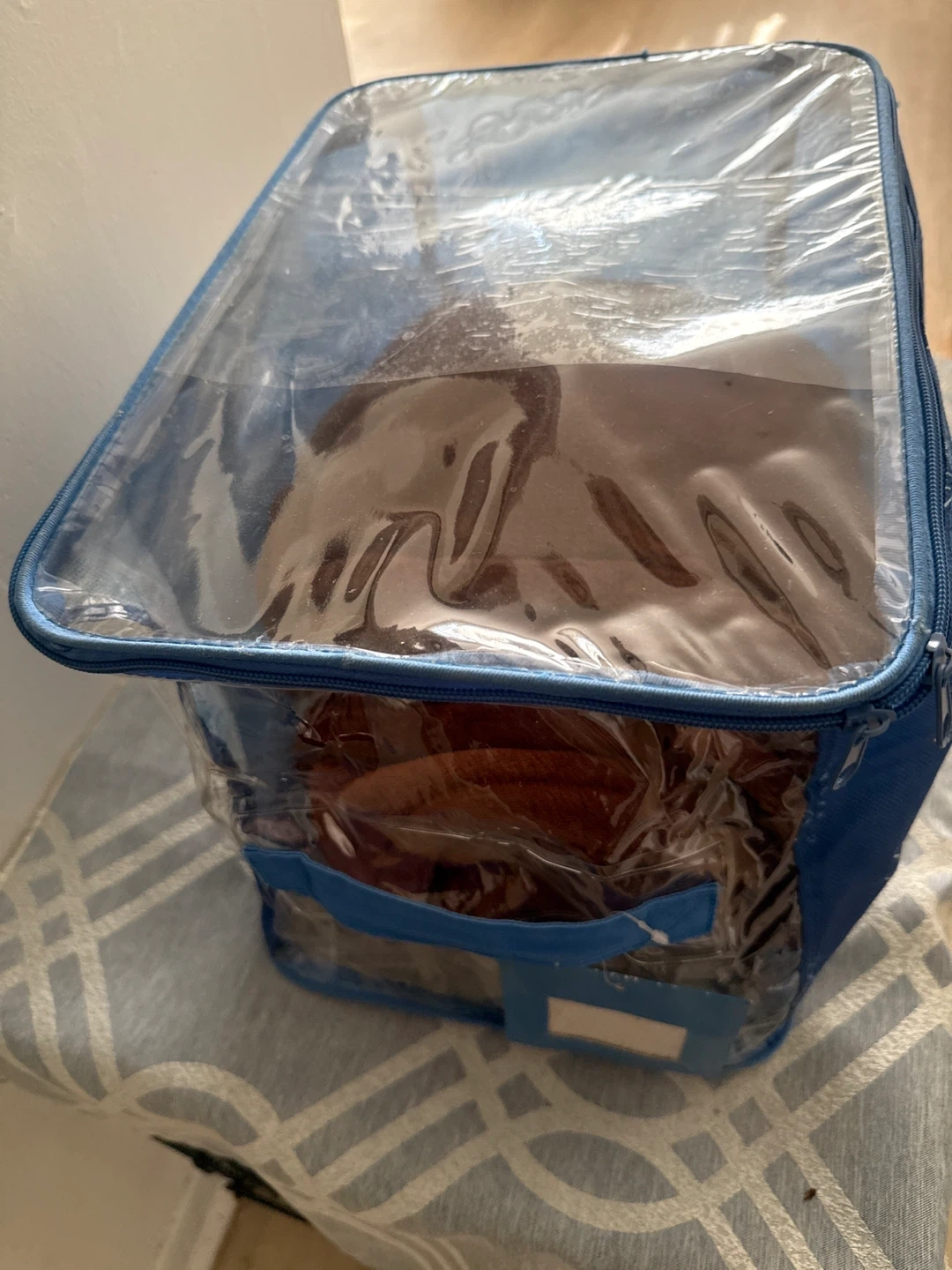 105Here's a cozy electric brown blanket, neatly stored in a blue zippered bag! It's perfect for adding some warmth to your home or taking on trips Single (twin bed)