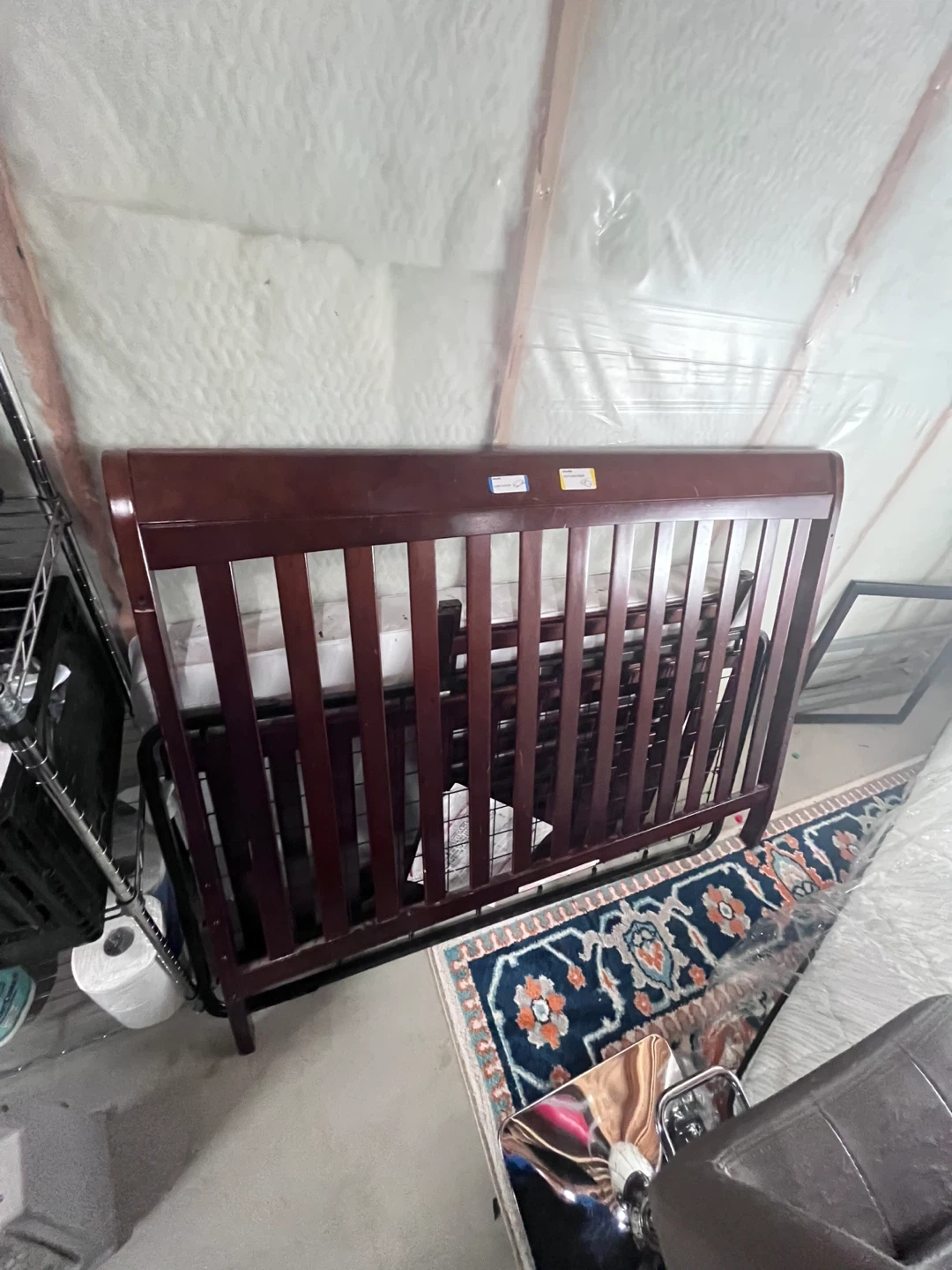 68Here's a crib in a lovely brown finish! It's in good condition and ready for a new home. Perfect for your little one's nursery