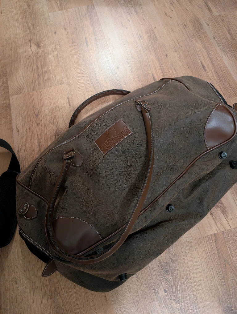 Monogramed Molson Canadian Logo, brown duffle bag. Great for travel or the gym.