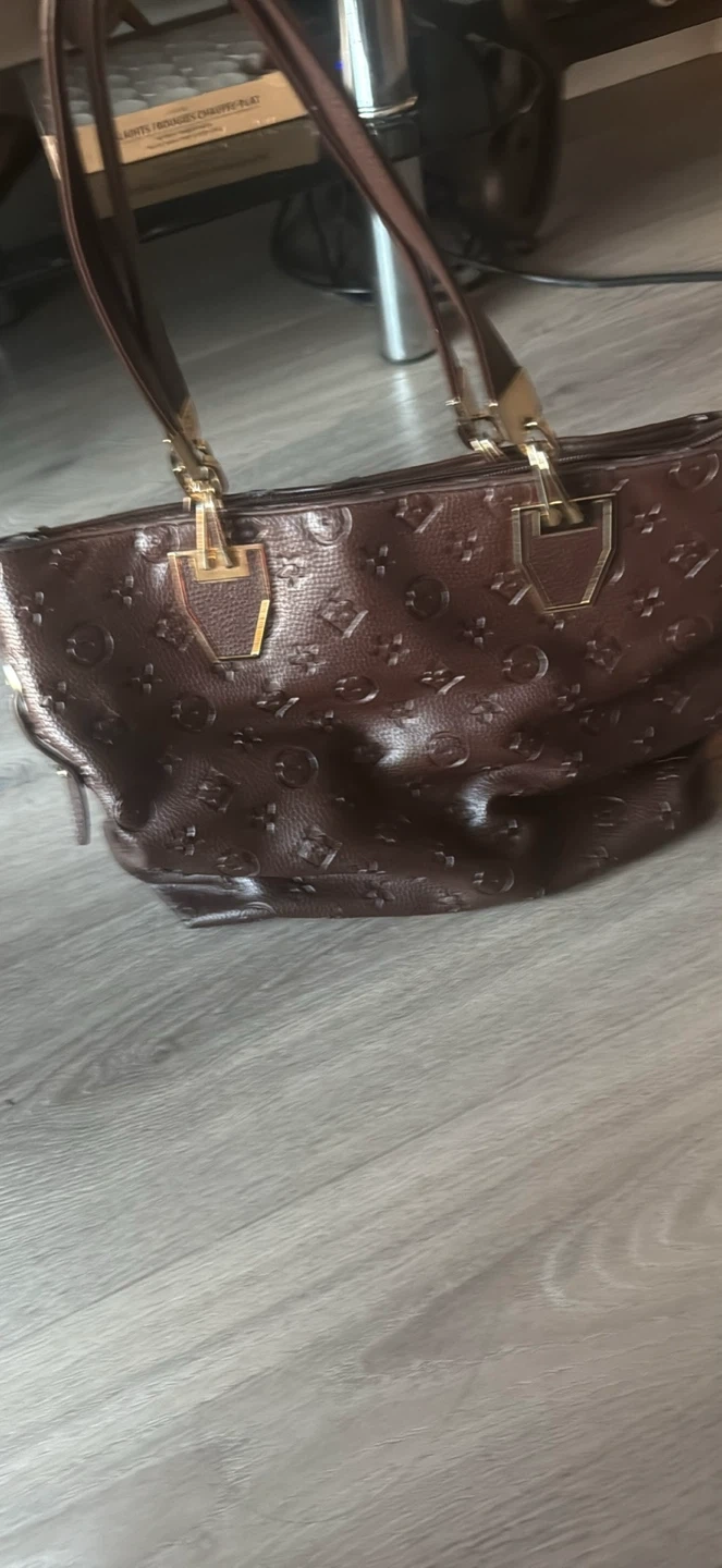 10A stylish brown tote bag with an embossed pattern is up for grabs! It's in great condition and ready for a new home. Perfect for carrying your everyday essentials.