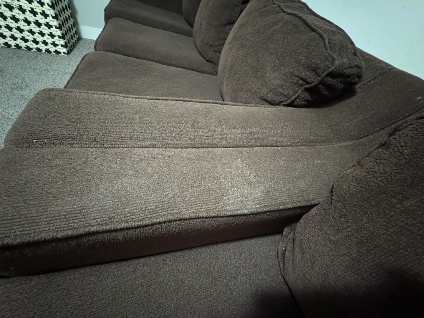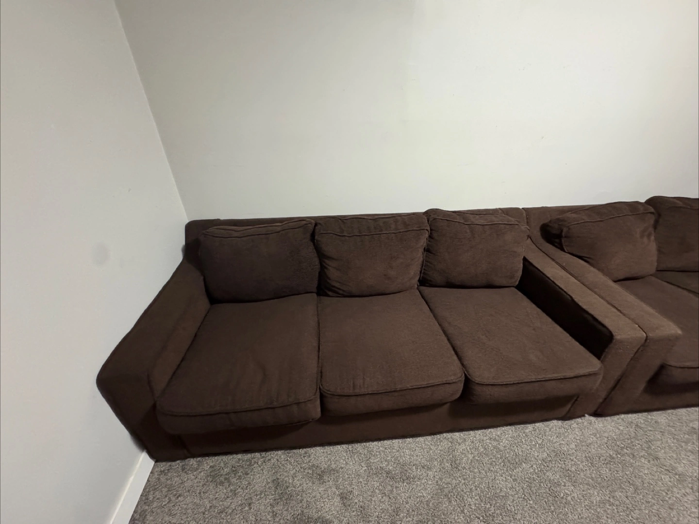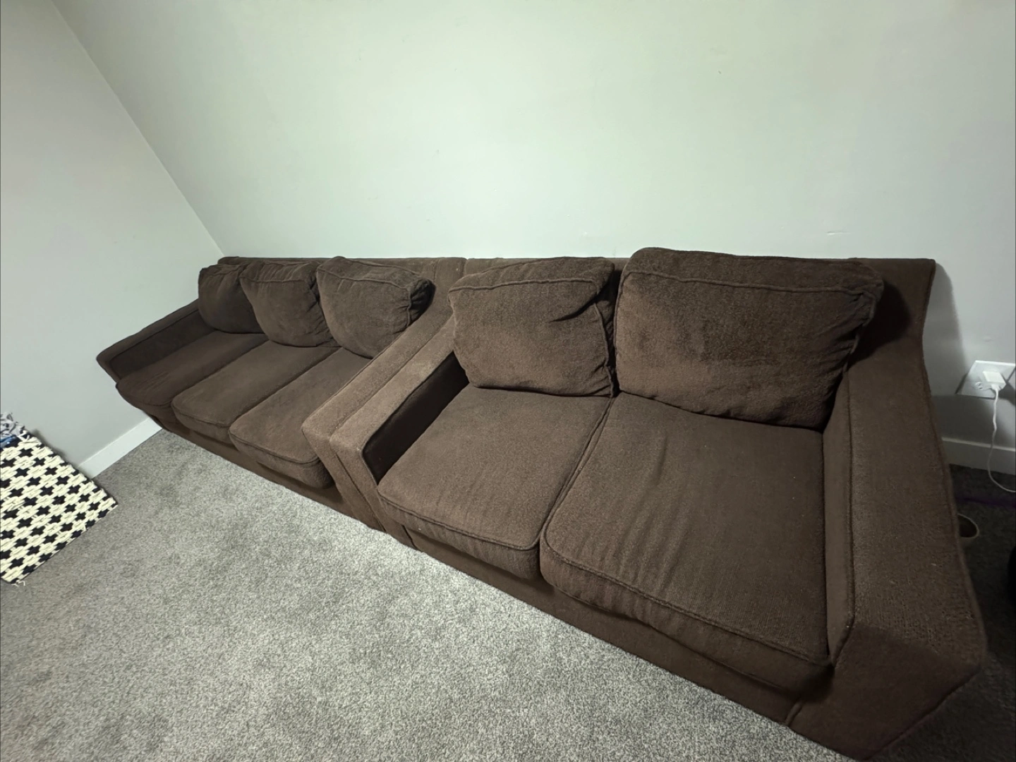 Selling a comfy brown sectional sofa! It's in good condition and ready for a new home. Perfect for lounging and movie nights with the family! Please note there are some signs of use. there some stains but can be clean.