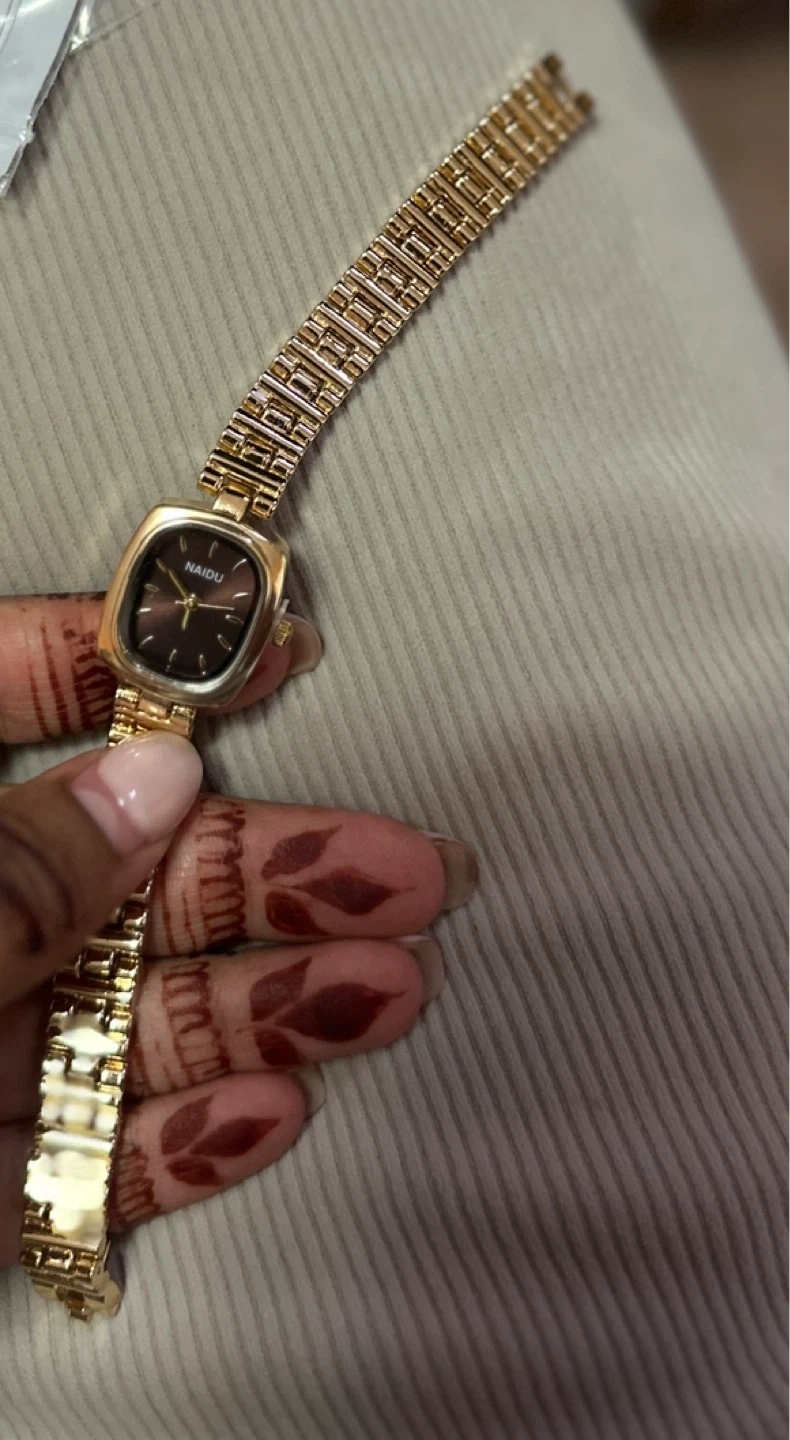 Women’s watch with gold-tone band and square brown face, in great condition!