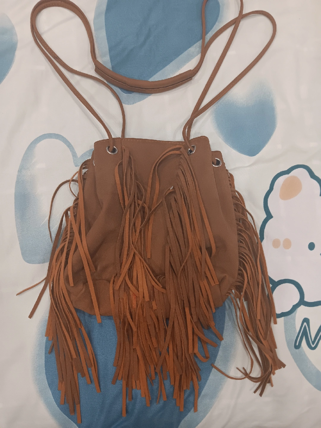 Cute brown shoulder bag with fringe detailing! Great for adding a bit of bohemian flair to your outfit. It's in great condition and ready for a new home